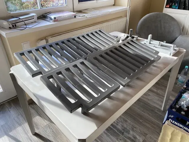 In bằng PETG để đảm bảo độ bền. Chúng tôi đã sử dụng vòi phun 0.4mm và chiều cao lớp 0.2mm. Đặt các phần úp xuống và bật hỗ trợ từ mặt bàn xây dựng. Đặt chân ở hai bên.
