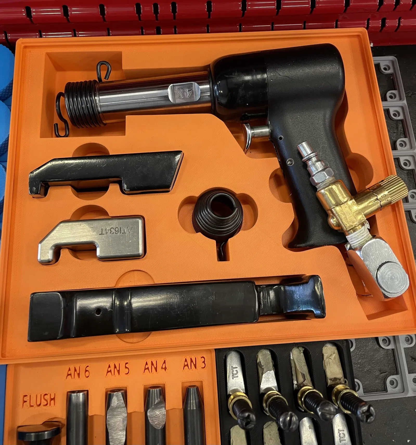 Một cái khay để giữ súng đinh tán từ sân và một số thanh lật