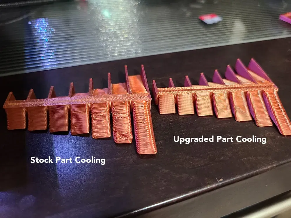Giải pháp làm mát bộ phận gắn phía trước cho BIQU BX và đầu đùn H2 của tôi. Kết hợp với quạt gốc và chạy cả hai song song, bạn có được khả năng làm mát bộ phận 360° và kết quả treo tốt hơn nhiều. Và chỉ để bạn biết, giắc cắm quạt gốc là một đầu nối JST-PH. Tôi đã tạo một bộ chuyển đổi pigtail để cho phép tôi chạy cả quạt gốc và quạt 5015 phía trước.