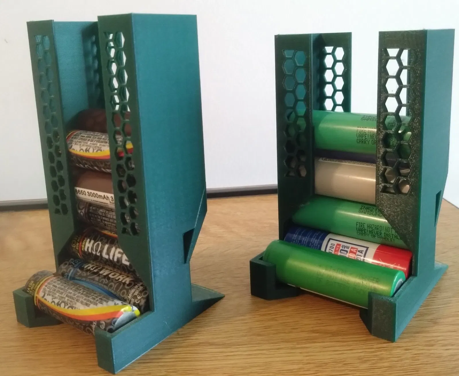In bằng PLA (đã thử bằng PETG nhưng không tốt bằng PLA vì quá mềm, tháp bị biến dạng khiến cho các pin trượt kém hơn bên trong).