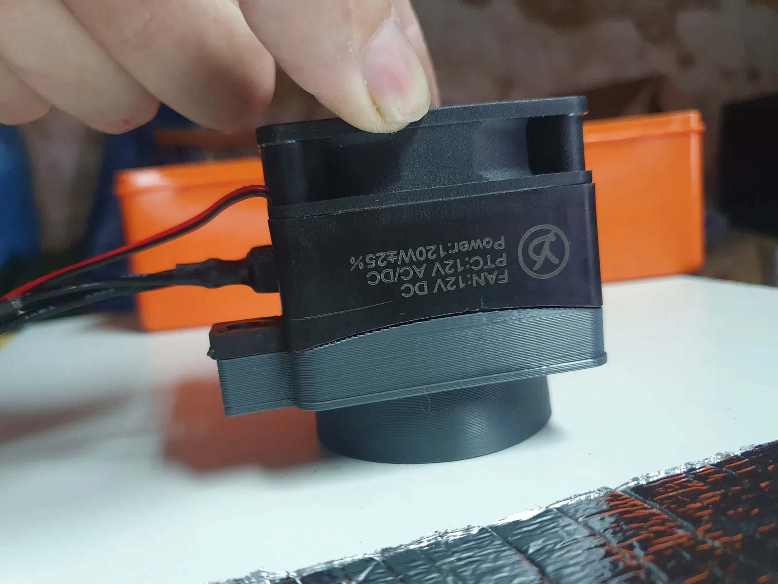Tôi không muốn bộ gia nhiệt chạm vào tường gỗ. Vì vậy, tôi đã tạo ra một phần giảm và đồng thời một lối đi qua tường gỗ. Nó dành cho hộp gia nhiệt của tôi cho máy in SLA, nhưng có thể được sử dụng theo cách khác.