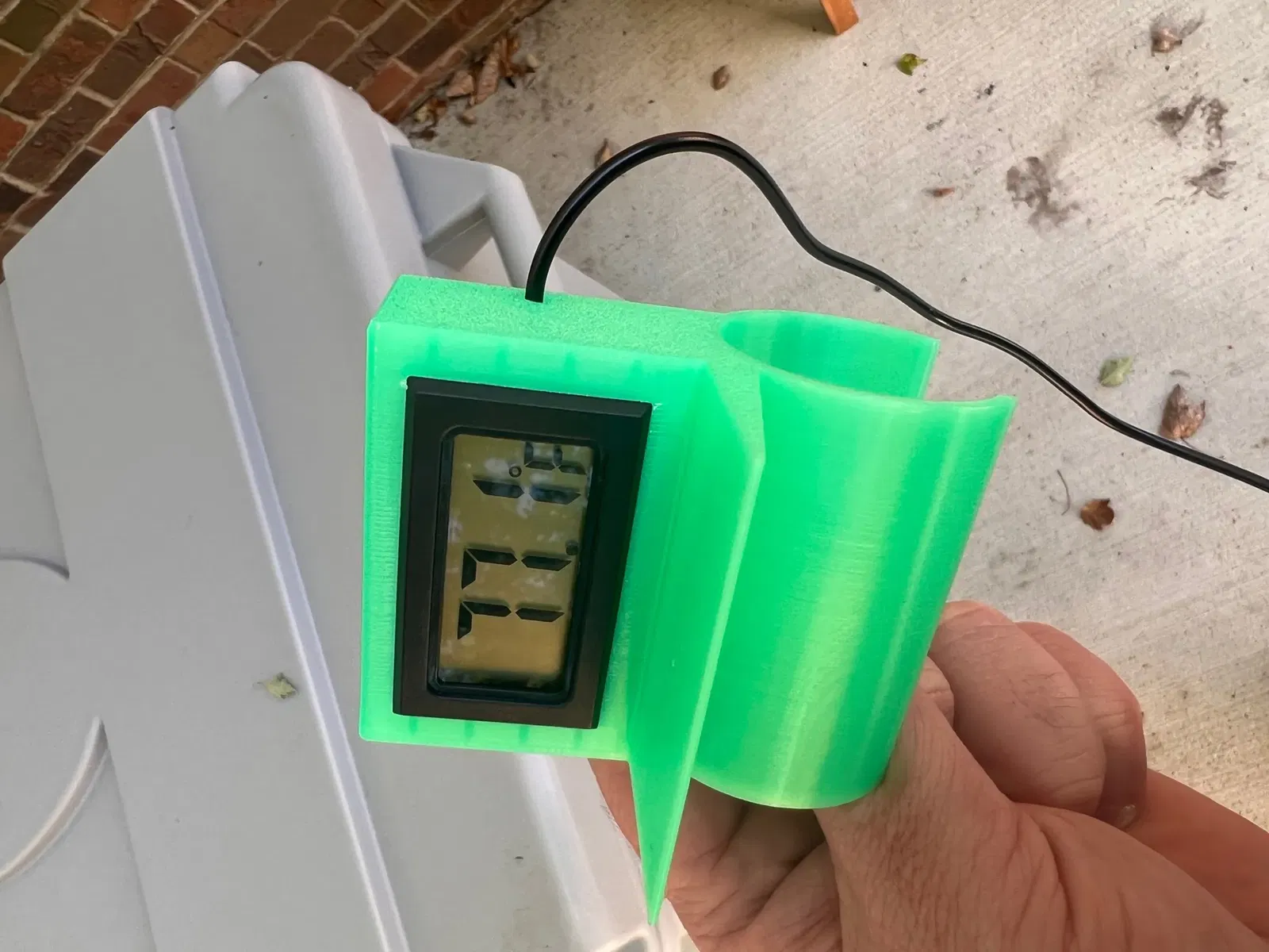 Giá đỡ đồng hồ đo nhiệt độ cho bình giữ lạnh Grizzly 400. Sử dụng những cái này như một cách dễ dàng để xem nhiệt độ của bể lạnh của tôi. Giá đỡ được thiết kế để gắn vào tay cầm và có khả năng xoay/giữ. Đồng hồ đo nhiệt độ được sử dụng là pin và có thể tìm thấy ở đây: https://www.amazon.com/dp/B00PQ2GJNY?psc=1&ref=ppx_yo2ov_dt_b_product_details