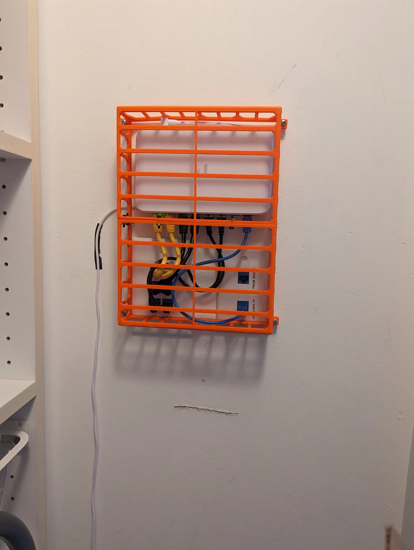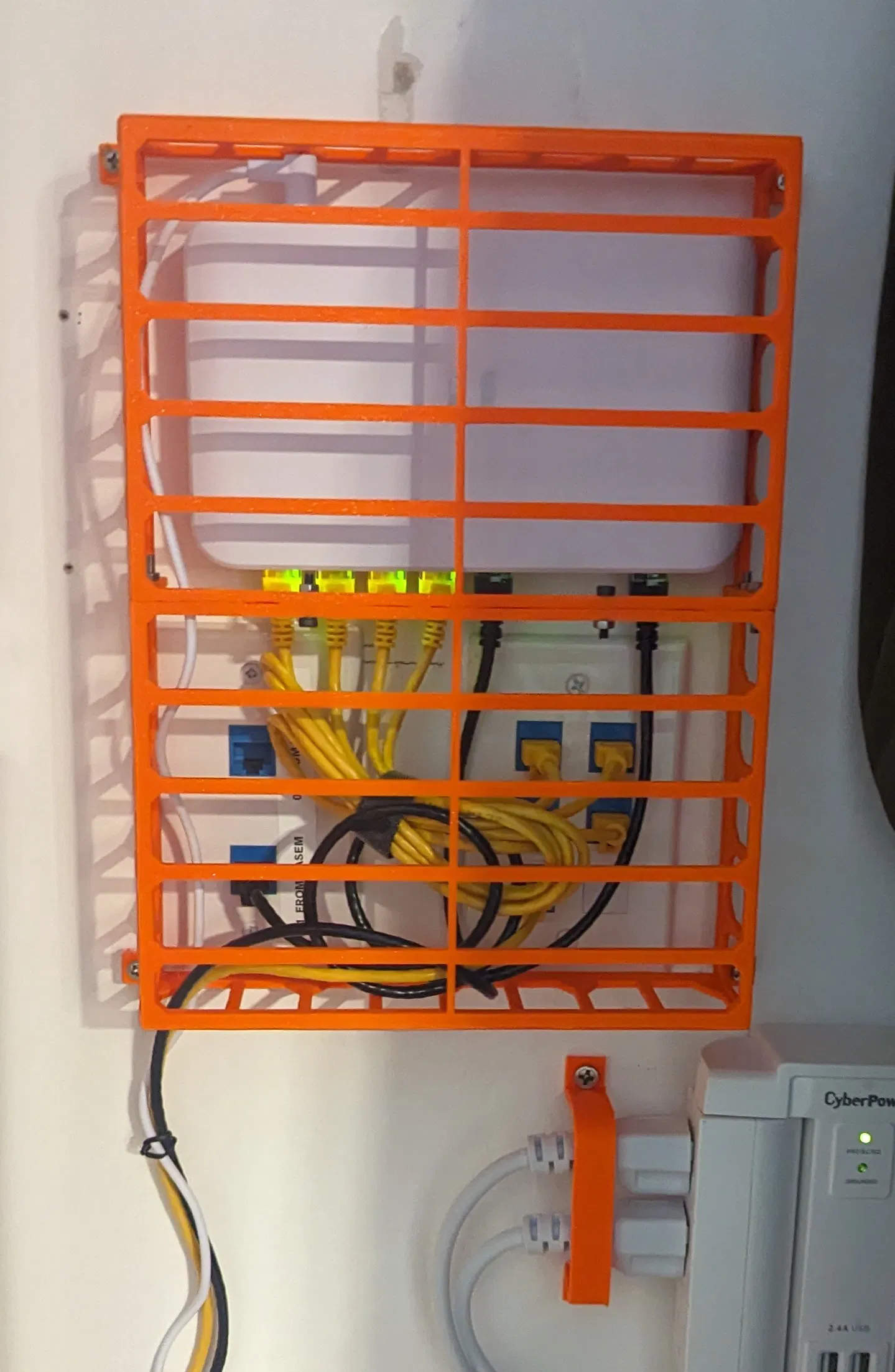 Đây là một cái lồng đa dụng để bảo vệ thiết bị mạng của bạn khỏi quá nhiệt trong tủ áo hoặc bị rút dây ra ngoài. Nó có thể gắn vừa 2 đế âm tường và một switch cỡ như Unifi Switch Lite 8.