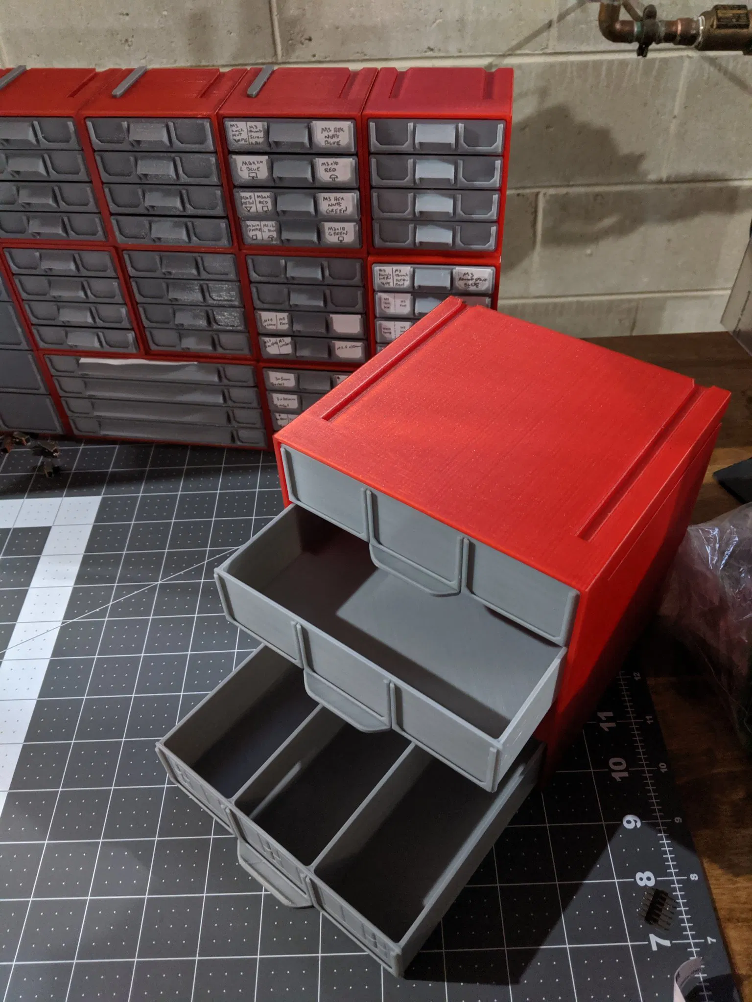 Đã thêm Drawer_2x2x2_three_compartments_clean.stl theo yêu cầu có mặt trước sạch sẽ. Sẽ tiếp tục thêm nhiều hơn trong vài ngày tới.