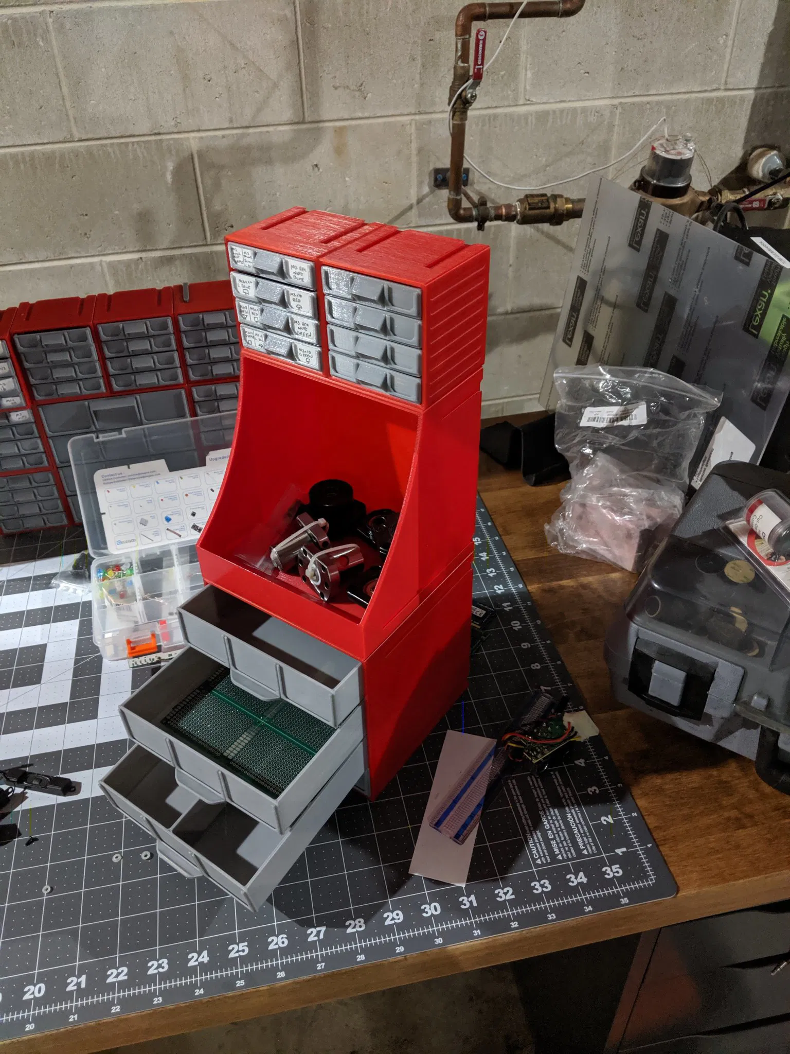 Tôi đã thêm phiên bản sâu gấp đôi, rộng gấp đôi, cao gấp đôi với các biến thể trên ngăn kéo. Còn nhiều điều nữa đang đến, cần nhiều máy in hơn để in nhanh hơn! Ảnh sẽ đến sau khi hoàn thành. Đã di chuyển tay cầm trên các phiên bản Rev2 xuống dưới để loại bỏ hỗ trợ cho các ngăn kéo lớn hơn và cho phép một nhãn thứ ba trượt vào.