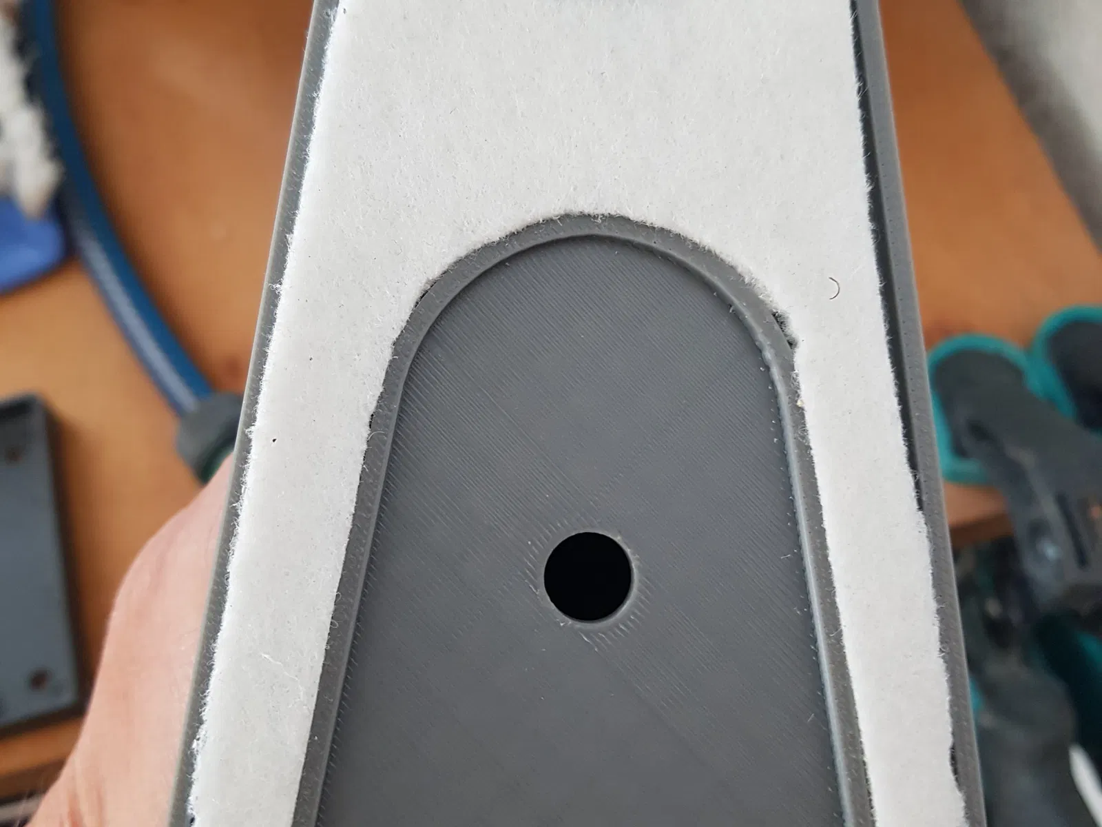 Cả hai bộ phận cần được gắn lại bằng vít M3 và ở mặt dưới, tôi đã cắt một miếng vải dính tự dán.
