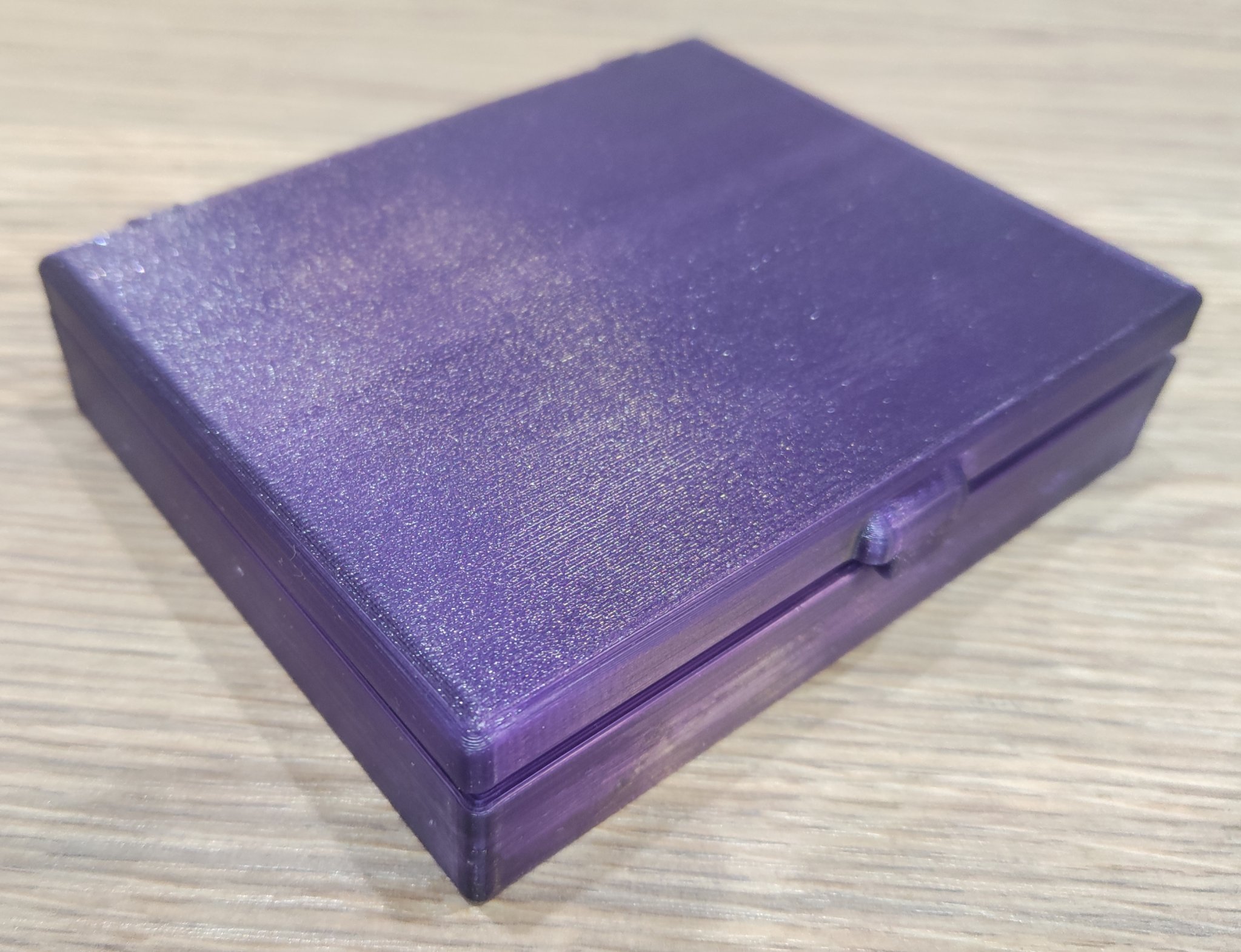 Đây là một bản sao của một hộp cuộn chỉ may bằng nhựa. Bản lề của hộp gốc đã bị hỏng nên nắp trên không đóng lại được. Hộp có thể chứa tới 25 cuộn chỉ nhỏ với nắp trên có khóa.
