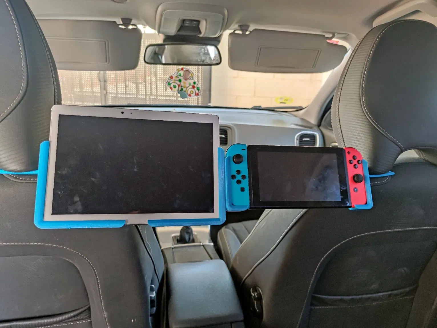 trong thị trường không có nhiều giá đỡ cho tựa đầu của các xe volvo và trong những chuyến đi dài với trẻ nhỏ, tôi phải tự nghĩ ra những cách để đặt máy tính bảng hoặc máy chơi game.