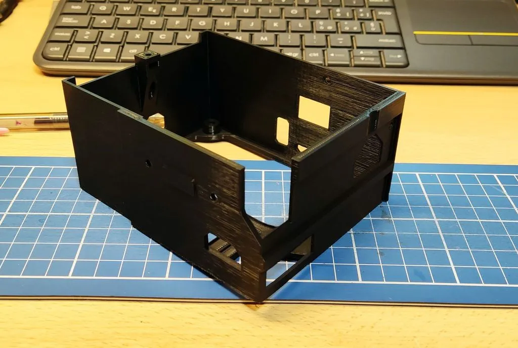 Tôi đã tạo ra một biến thể của hộp cho bo mạch chủ, tôi muốn một cái gì đó rộng rãi hơn (trong phiên bản gốc không thể đặt một ngón tay vào) và có thể tháo rời, trong trường hợp có thay đổi tôi chỉ cần in lại cái đó.