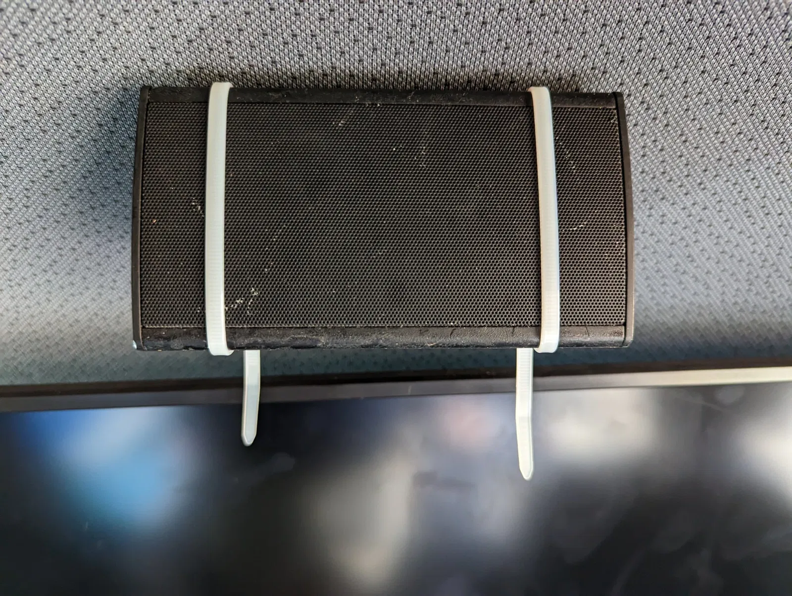 Tôi muốn gắn loa bluetooth Oontz của mình lên trần xe van, vì vậy tôi đã thiết kế một giá đỡ bằng dây zip cho nó. Mảnh phía sau nằm sau tấm trần và mảnh phía trước được vặn vào đó. Các khe được kích thước cho dây buộc tiêu chuẩn, và các góc được cắt ra để tạo không gian cho chân Oontz.