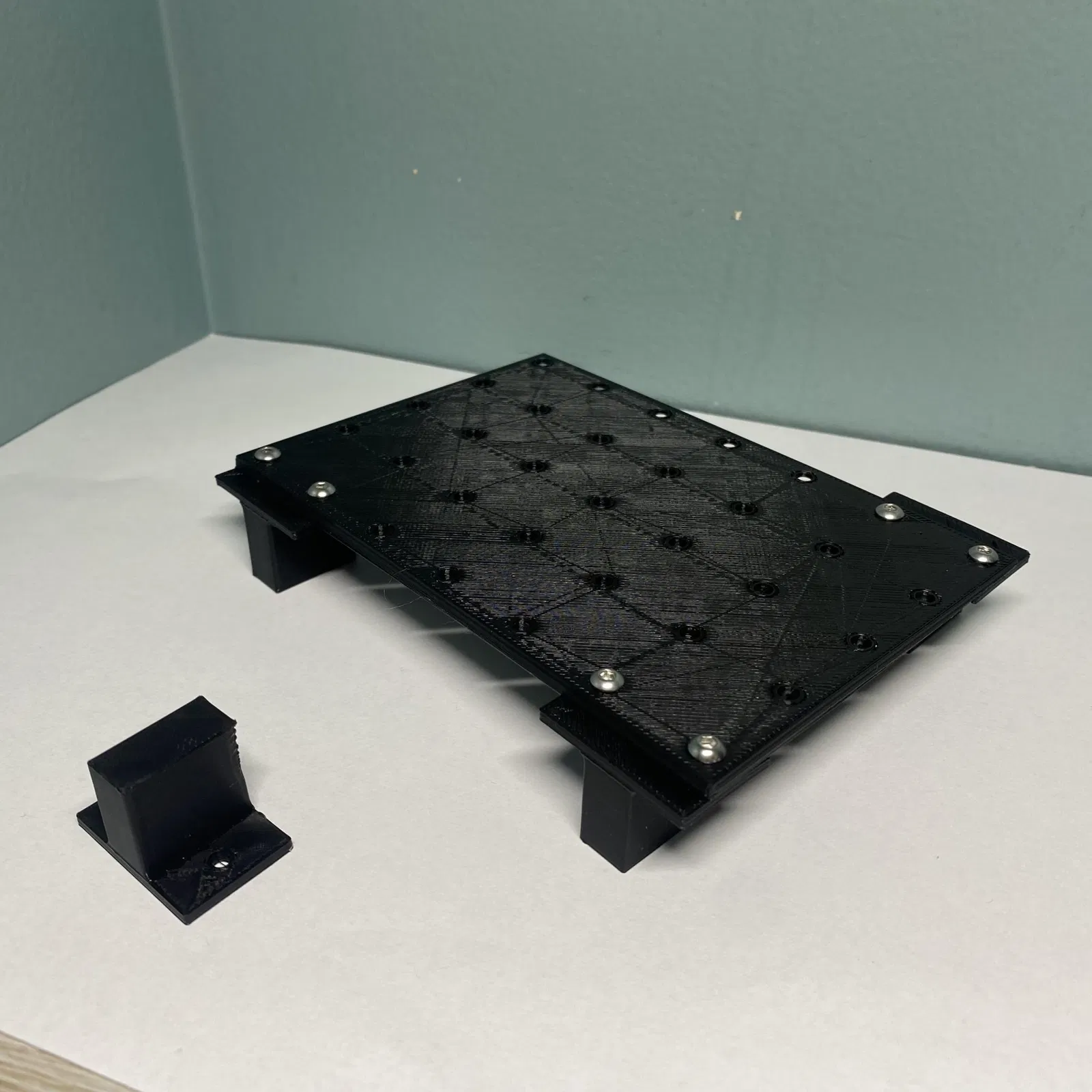 Những chân có thể được gắn vào một tấm ORP để nâng nó lên khỏi mặt đất. Hữu ích cho các giá thử nghiệm hoặc các robot không di động khác. Cái này cụ thể cần 2 lỗ để gắn, và nâng tấm lên 20 mm khỏi mặt đất.