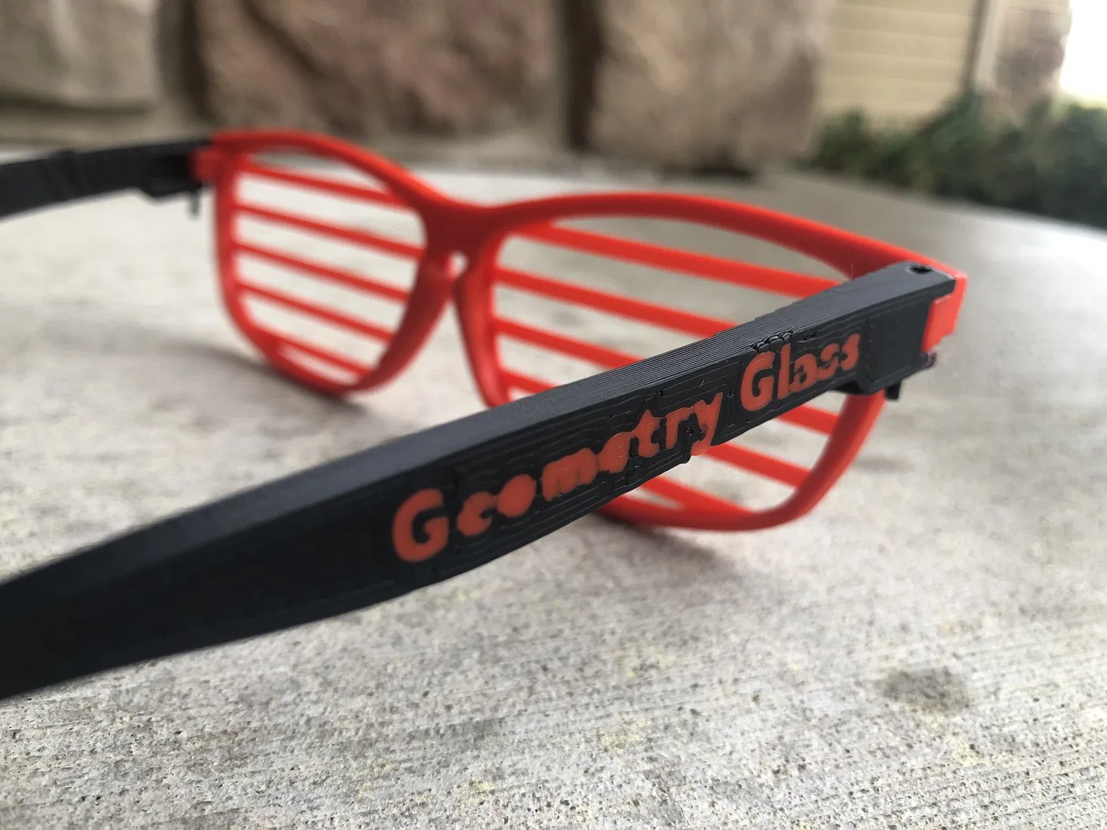 Tôi đã muốn làm một cặp kính trong một thời gian và đã làm một phiên bản rất thô sơ cách đây khoảng 6 tháng. Sau đó, trong một cuộc thi chạy việt dã, tôi muốn có một cặp kính giữ chắc để có thể đeo trong cuộc thi, vì vậy tôi đã tìm thấy một phiên bản trực tuyến mà hoạt động được một chút và cuối cùng đã làm cho các lỗ lớn hơn, làm cho sự gắn kết ít có khả năng bị gãy hơn, thêm văn bản và thêm các đường nét để có một vẻ ngoài độc đáo. Để biết thêm thông tin, đây là một video về chúng →