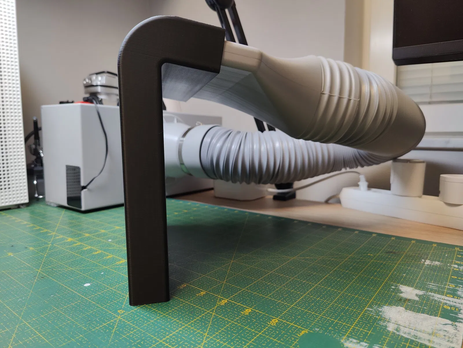 Bộ chuyển đổi góc lắp vào ống xả của một buồng phun phổ biến. Được thiết kế để treo trên đỉnh của một cửa sổ mở vào trong nhằm dẫn khí ra ngoài.