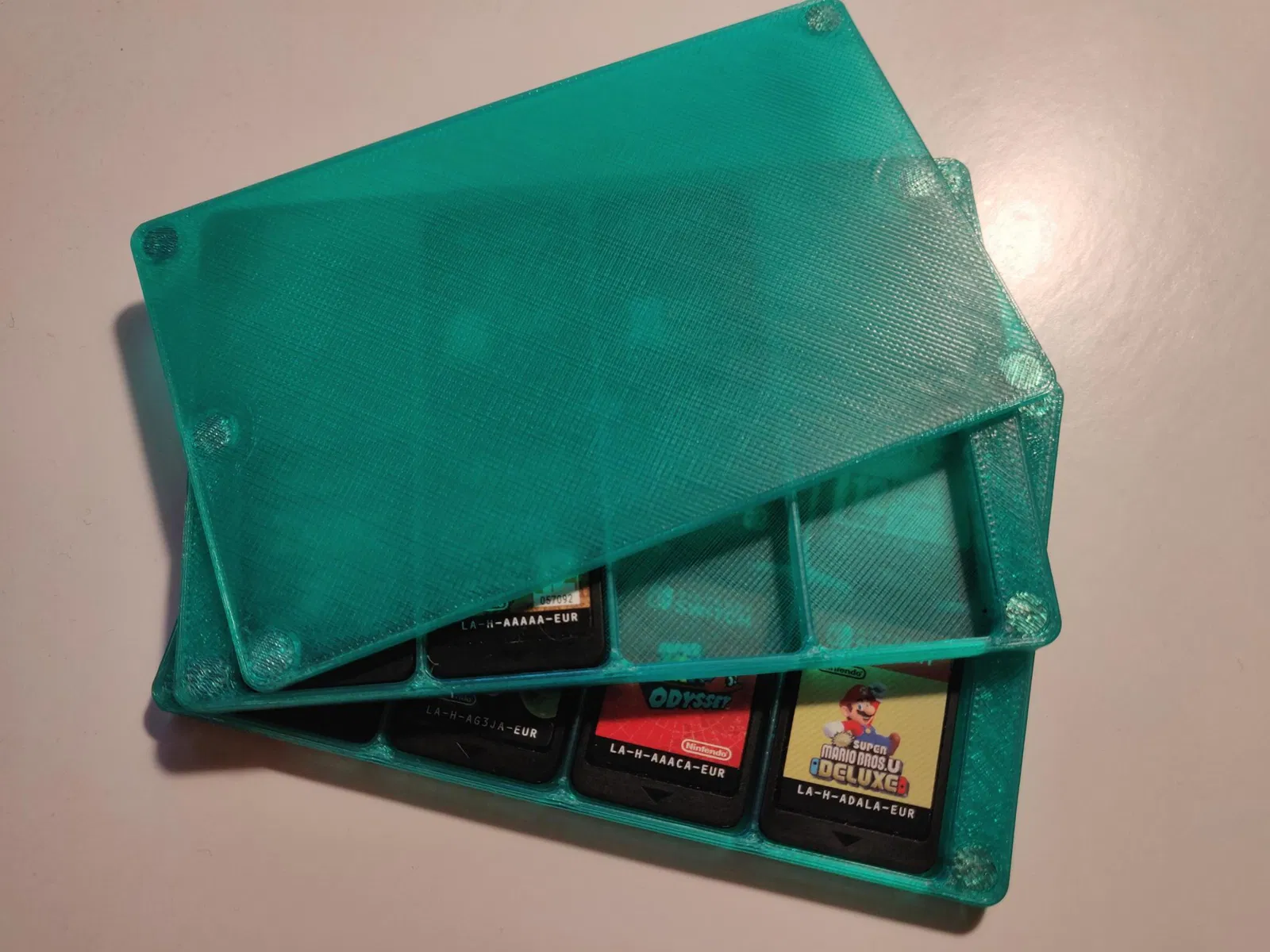 Đây là một hộp cartridge game Nintendo Switch có thể xếp chồng lên nhau bằng nam châm.