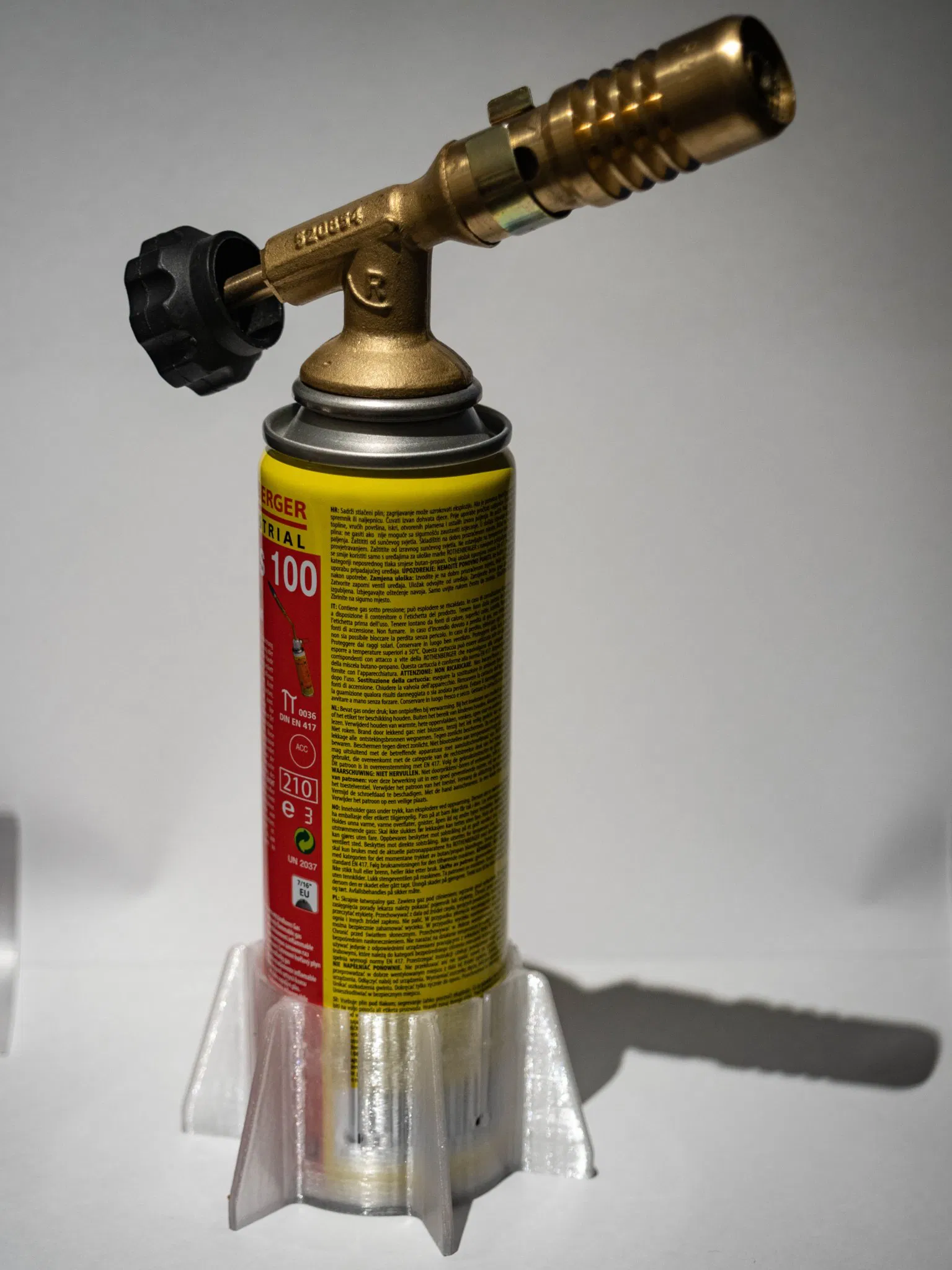 Một hỗ trợ đứng cho một xi lanh Minigas 100 để ngăn chặn đầu đốt của bạn rơi xuống.