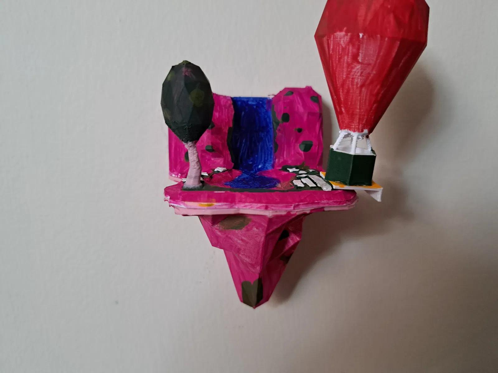 Một hòn đảo nổi low poly đơn giản với hồ nước và khinh khí cầu phía trên. Hoàn hảo cho việc trang trí hoặc làm mô hình.