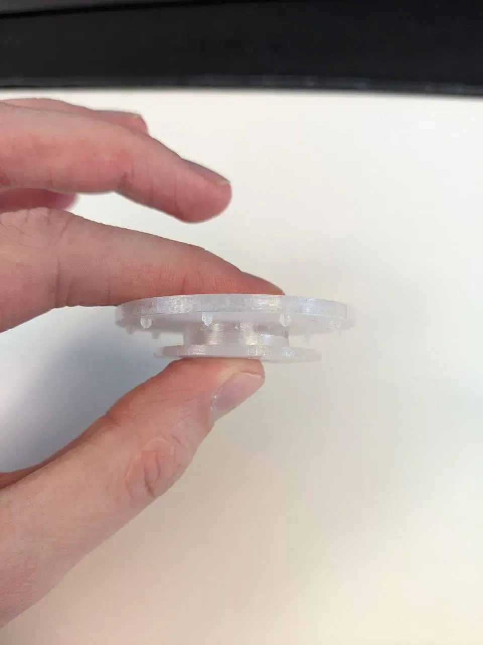 Tôi đã in nó bằng PETG (chỉ có một cuộn trong suốt) để nó bền hơn PLA. Tôi chắc chắn nó cũng sẽ hoạt động tốt nếu bạn in nó bằng PLA. Cần hỗ trợ cho phần nhô ra ở phần trên.
