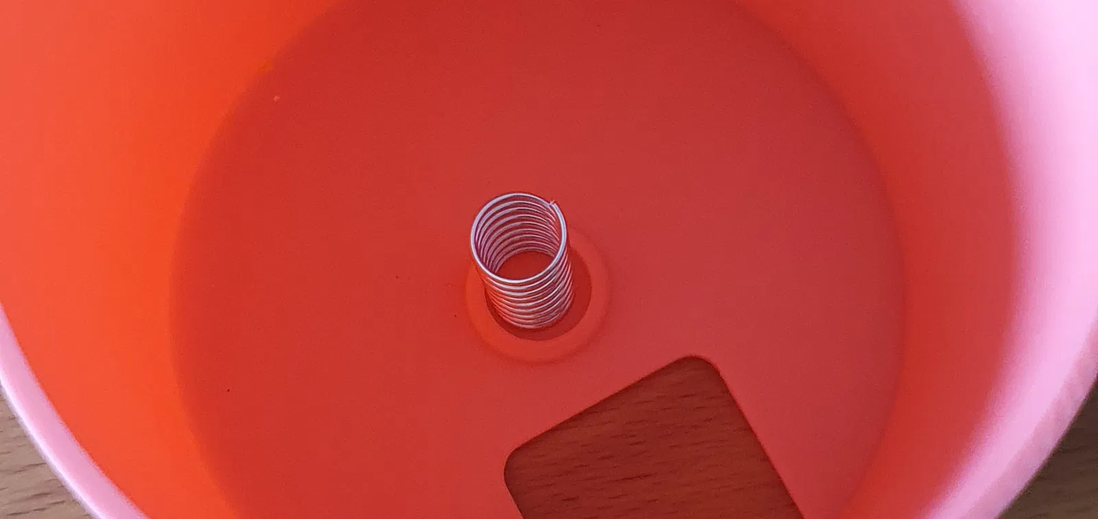 Lò xo được đặt trong thùng chứa bên ngoài. Sau đó, phần bên trong với hướng dẫn được đưa vào. Việc xoay giúp đảm bảo rằng thùng chứa không bị gỡ bỏ một cách tình cờ và lò xo luôn ở trạng thái căng. Ngoài ra, có một phần mở rộng của hướng dẫn ở vị trí thải ra để thùng chứa không thể bị xoay một cách tình cờ. Hơn nữa, máng thải được làm tròn để không có vụn bánh nào có thể bị kẹt giữa hai phần.