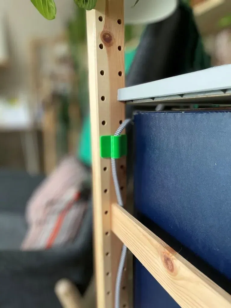 Dưới đây là 3 kẹp quản lý dây khác nhau được thiết kế để sử dụng với hệ thống kệ IKEA IVAR. Một kẹp ngang và một kẹp dọc vừa vặn vào các lỗ ở hai bên IVAR và một kẹp cuối cùng vừa vặn vào cạnh của kệ.