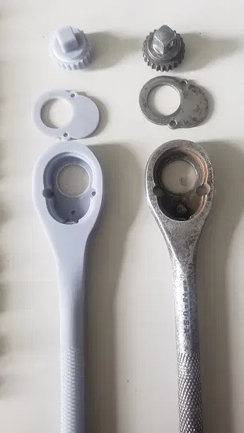 Đây là một cờ lê socket ¼" có thể đảo ngược. Tôi đã mô phỏng nó dựa trên một cái cũ và rỉ sét mà tôi tìm thấy tại một buổi bán tài sản.