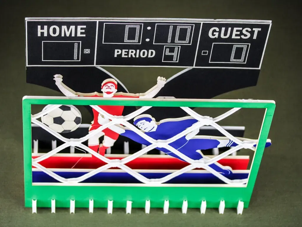 Chiến thắng và nỗi đau đều được thể hiện trong cảnh bóng đá này được cắt laser từ foamcore.