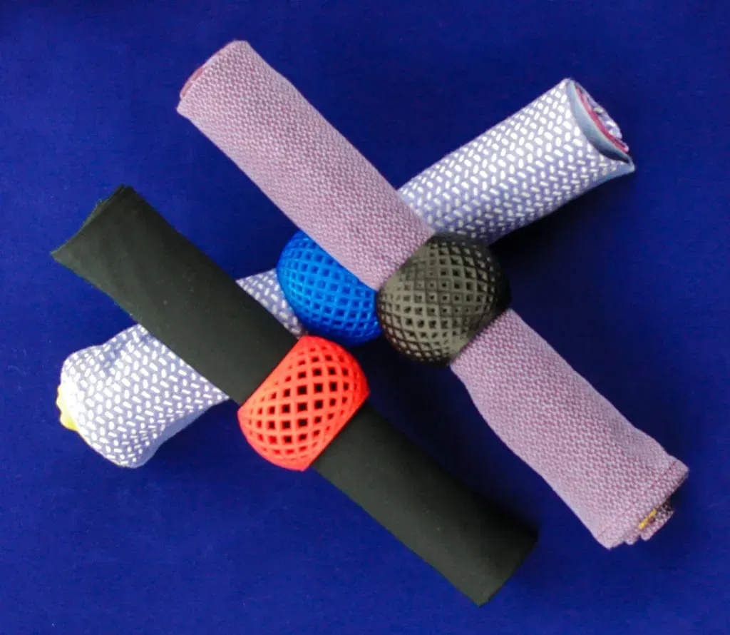 Bộ thiết kế vòng khăn ăn này đơn giản và sạch sẽ. Kết hợp và pha trộn những thiết kế này với những thiết kế khác từ Bộ sưu tập Đồ dùng Bàn ăn. ### Hướng dẫn Các thiết kế có thể dễ dàng và thành công khi in mà không cần giàn hoặc hỗ trợ, sử dụng PLA hoặc ABS với ít nhất 2 lớp vỏ và độ đầy 15% trở lên.