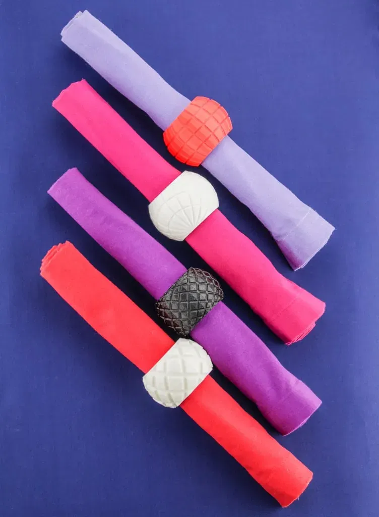 Một bộ thiết kế vòng khăn ăn đa dạng. Kết hợp và phối hợp thiết kế này với các thiết kế khác từ Bộ đồ dùng bàn ăn. ### Hướng dẫn Các thiết kế có thể dễ dàng và thành công in mà không cần bè hoặc hỗ trợ bằng cách sử dụng PLA và ABS với ít nhất 2 lớp vỏ và độ đầy tối thiểu 15% hoặc lớn hơn.
