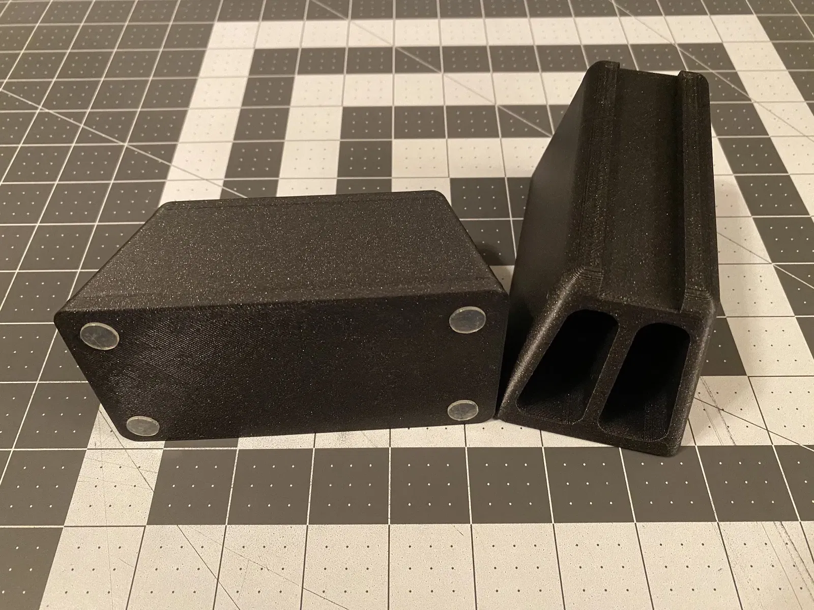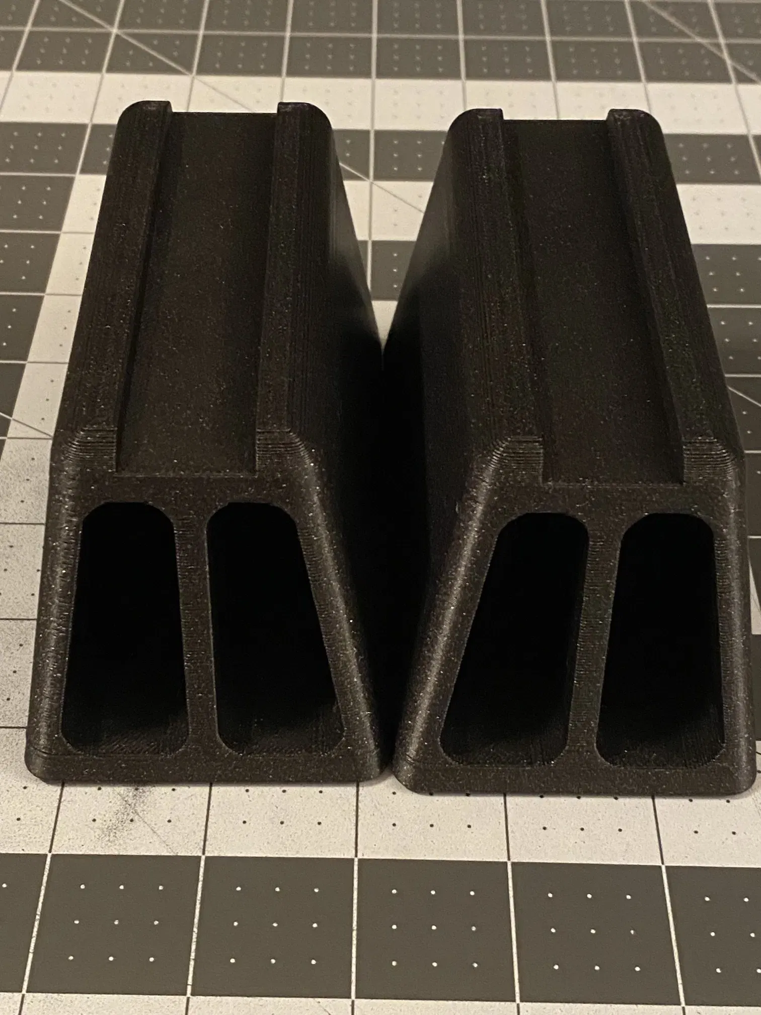 Đây là giải pháp của tôi. Tôi đã in chúng mà không cần hỗ trợ và ở độ cao lớp 0.3mm trong PLA. Khi sử dụng, tôi cố định các giá đỡ màn hình vào chúng bằng một dải băng 3M Command trong suốt nhỏ được đặt trong khe trên giá đỡ để chúng giữ chắc chắn tại chỗ.