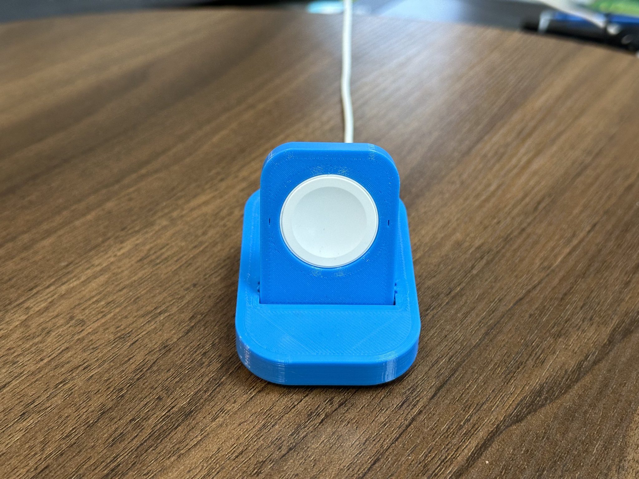 Tôi muốn một giá đỡ sạc Apple Watch đơn mà tôi có thể mang theo khi đi công tác hoặc đi nghỉ, nhưng không thể tìm thấy một cái phù hợp với những gì tôi đang tìm kiếm. Tôi đã thiết kế cái này để đáp ứng tất cả các nhu cầu của tôi. Nó giữ đĩa sạc Apple Watch tiêu chuẩn một cách chặt chẽ và tích hợp quản lý/định hướng cáp. Một vòng cáp có móc và dán cũng có thể được sử dụng để giữ cáp sạc khi quấn quanh giá đỡ khi gập phẳng.