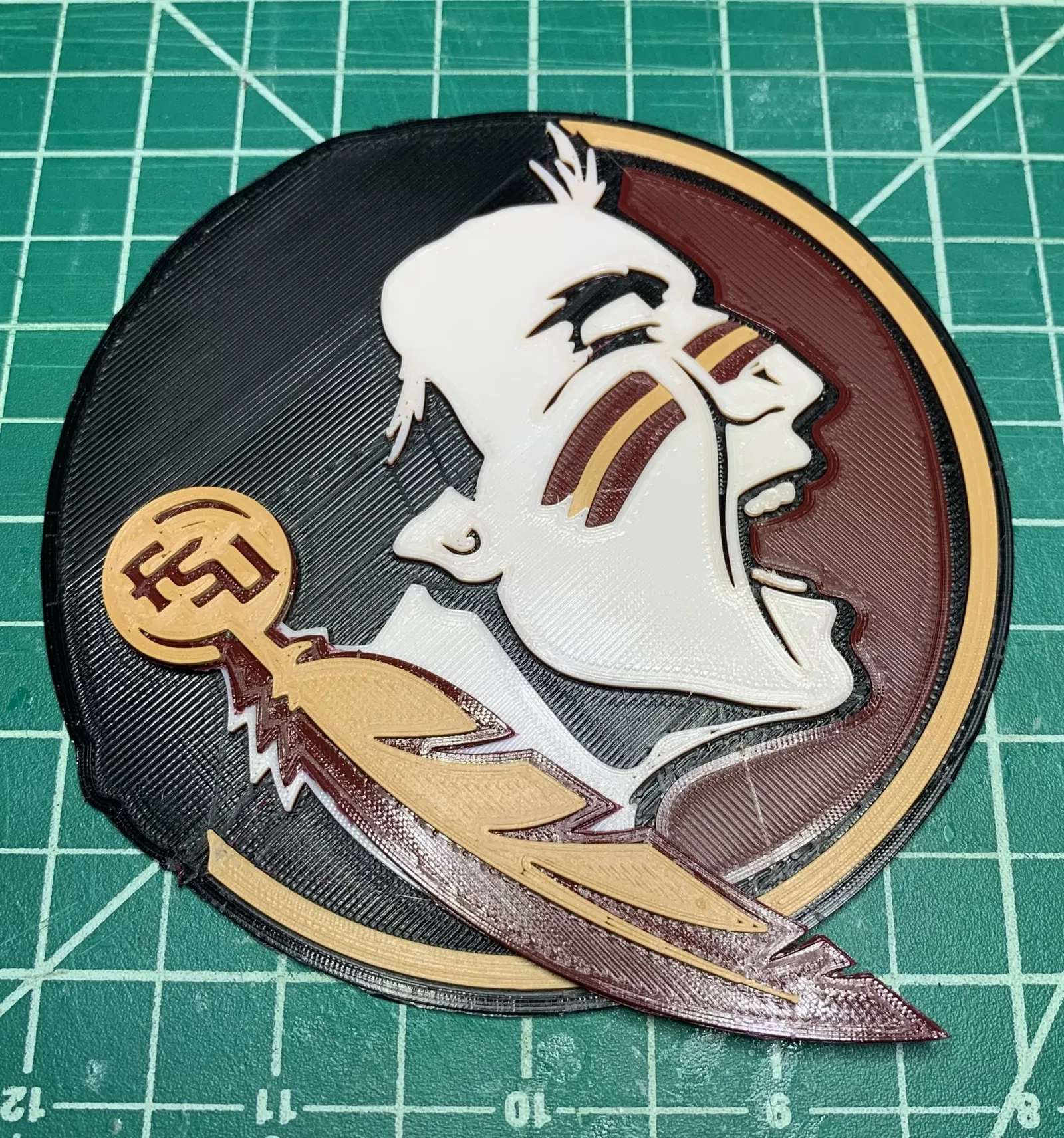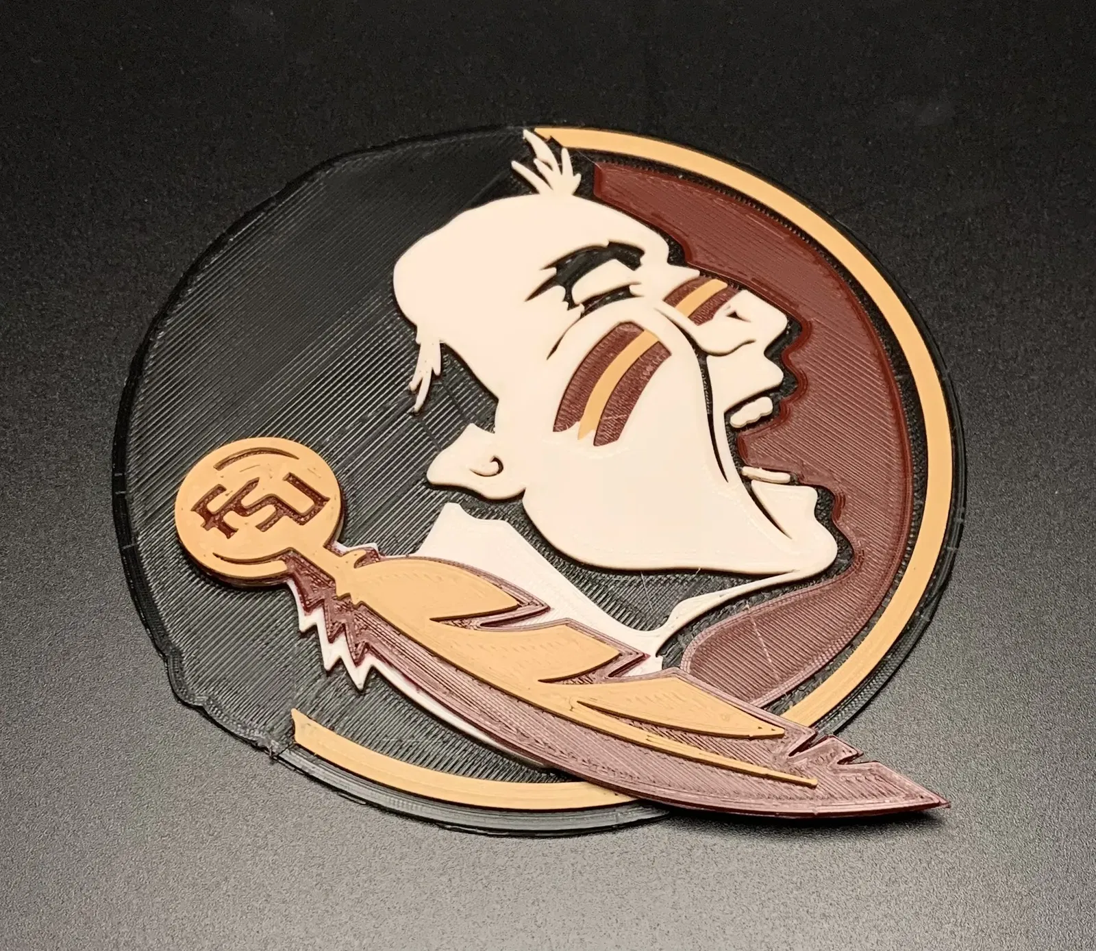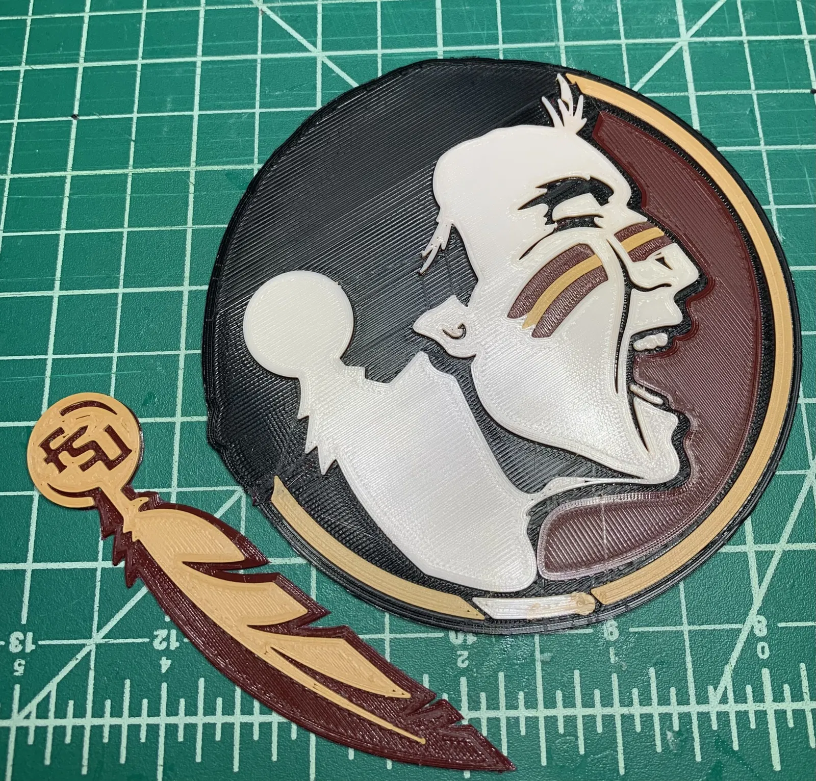 Tệp STL bao gồm hai yếu tố, logo mặt chính của Seminole và một tệp riêng biệt bao gồm lông vũ cần được dán bằng keo Loctite, tốt nhất là.
