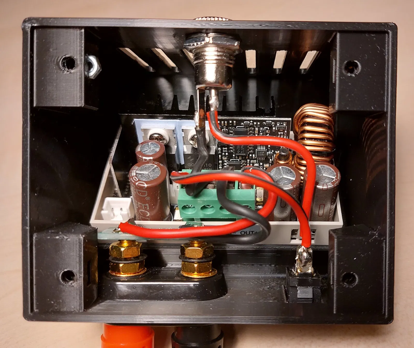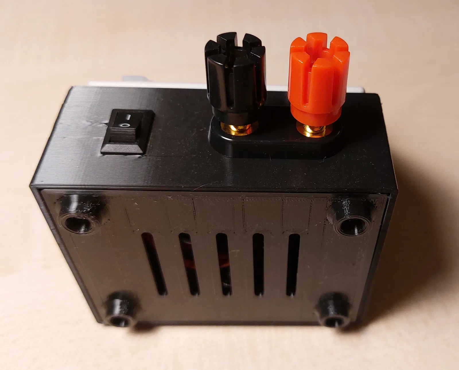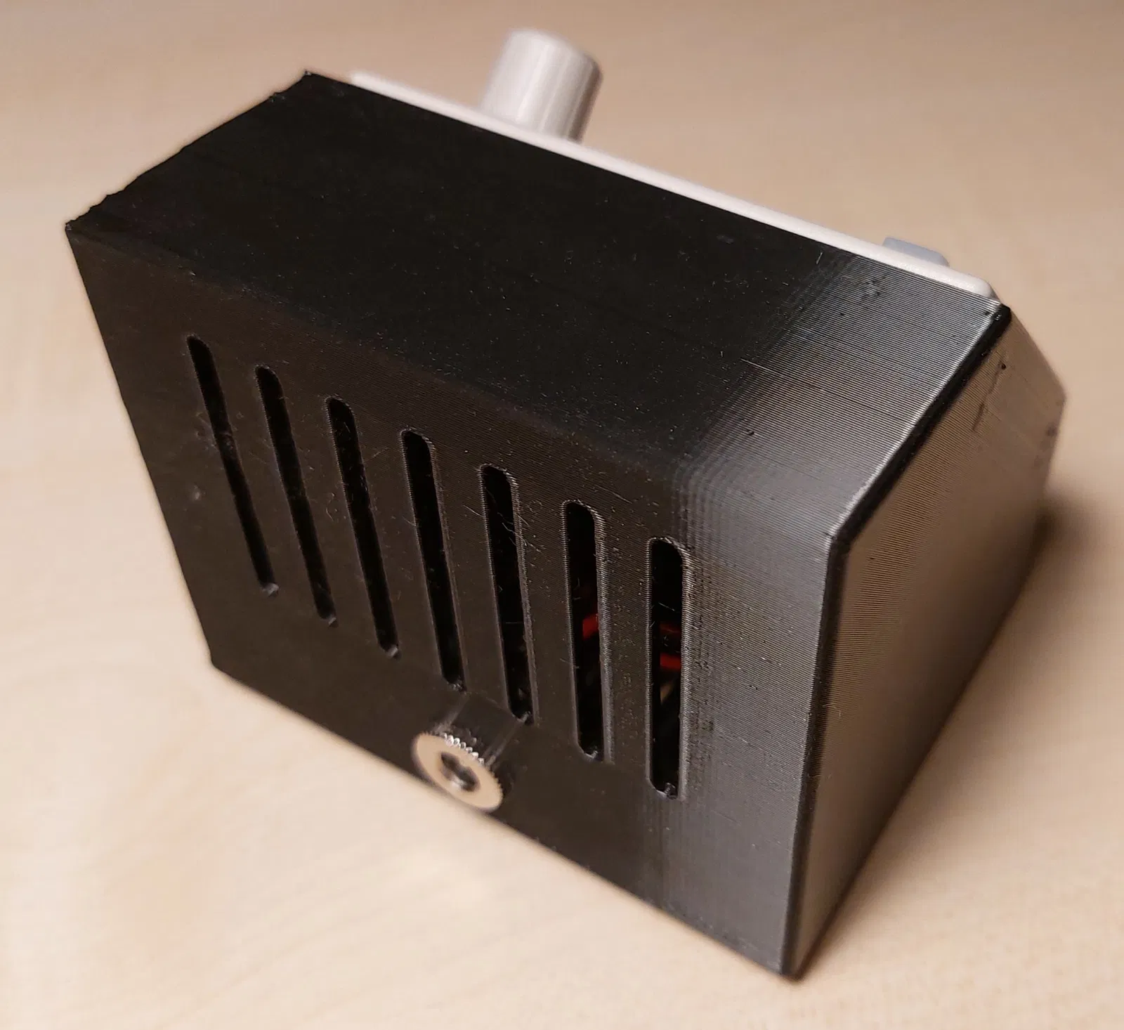 In ấn mà không cần hỗ trợ như đã hiển thị trong ảnh chụp màn hình đính kèm. Chèn đai ốc 3mm vào các lỗ trong vỏ và cố định nắp bằng vít 3mm.
