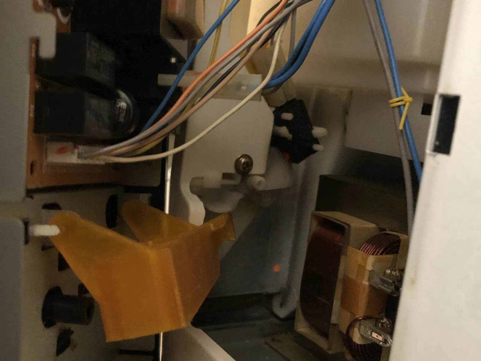 Lò vi sóng hoạt động hoàn toàn, khoảng năm 1994, Quazar 80BP1881, kết hợp lò vi sóng/đầu hút, với cơ chế mở cửa bị hỏng. Vài tuần trước Giáng sinh năm 2018, cửa lò vi sóng quyết định đã đủ và không muốn mở nữa. Điều này thật tàn khốc vì chúng tôi sử dụng lò vi sóng cho mọi thứ! Lò vi sóng hoạt động bình thường ngoại trừ cửa… Tôi vừa mới nhận được MK3 của mình cách đây vài tháng và đây là thứ đầu tiên tôi sửa chữa bằng nó. Tôi đã tạo ra một phần nhô ra cửa mới. Phần cũ chỉ bị giòn sau hơn 20 năm sử dụng và không có sự thay thế nào có sẵn ở đâu cả. Thật buồn là tôi không có ảnh của phần bị hỏng, chưa bao giờ nghĩ đến việc chụp một bức, nhưng phần in vẫn đang được sử dụng gần 5 năm sau! Tôi đã in phần này bằng PETG, làm một cái dự phòng phòng khi cần và chưa bao giờ nhìn lại. Đến nay vẫn chưa sử dụng cái dự phòng. Một minh chứng cho việc máy in hữu ích như thế nào!!!!