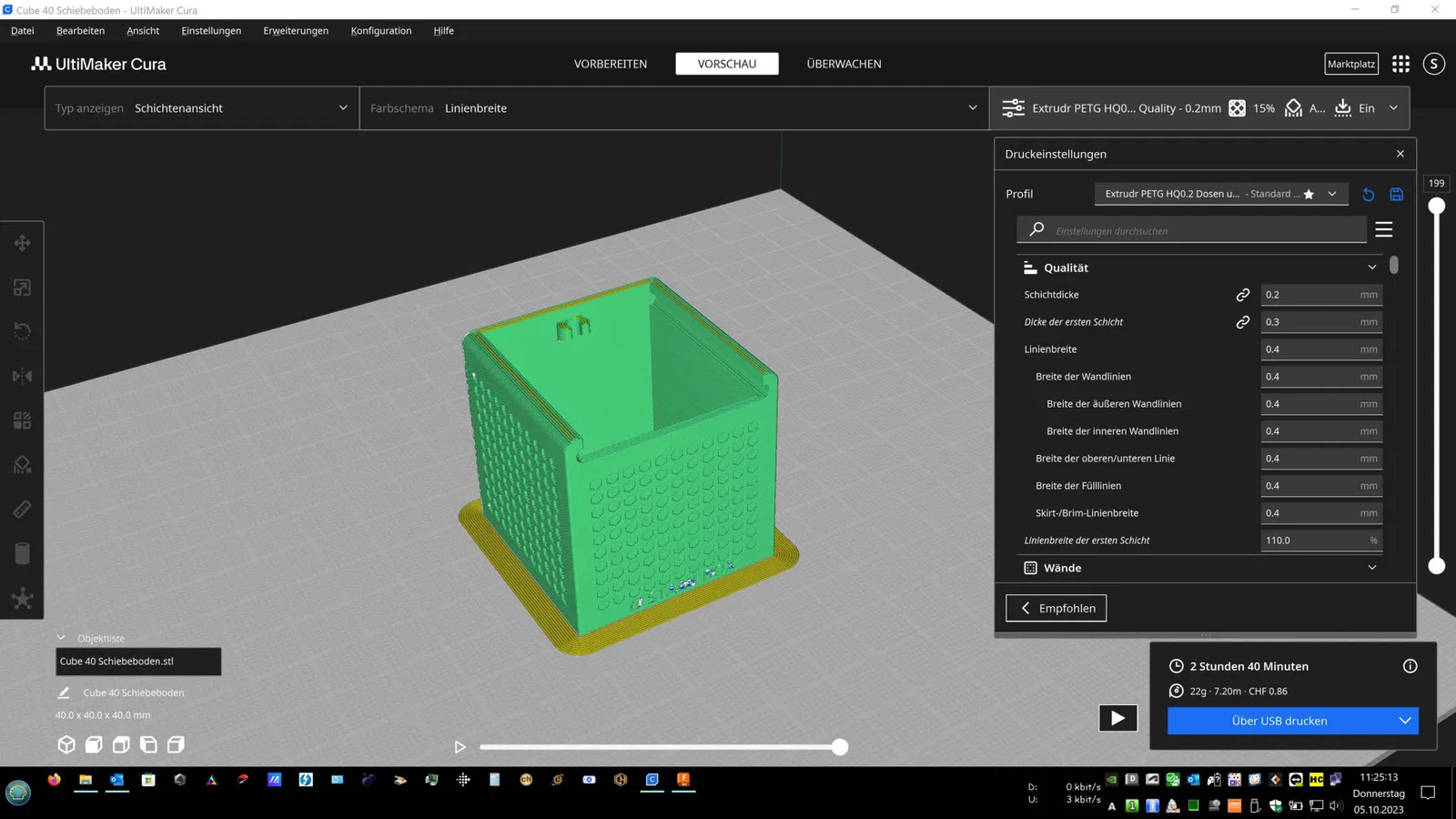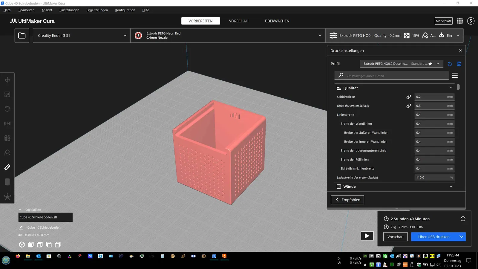 Cube 40 với mô hình và nhấp vào nắp trượt