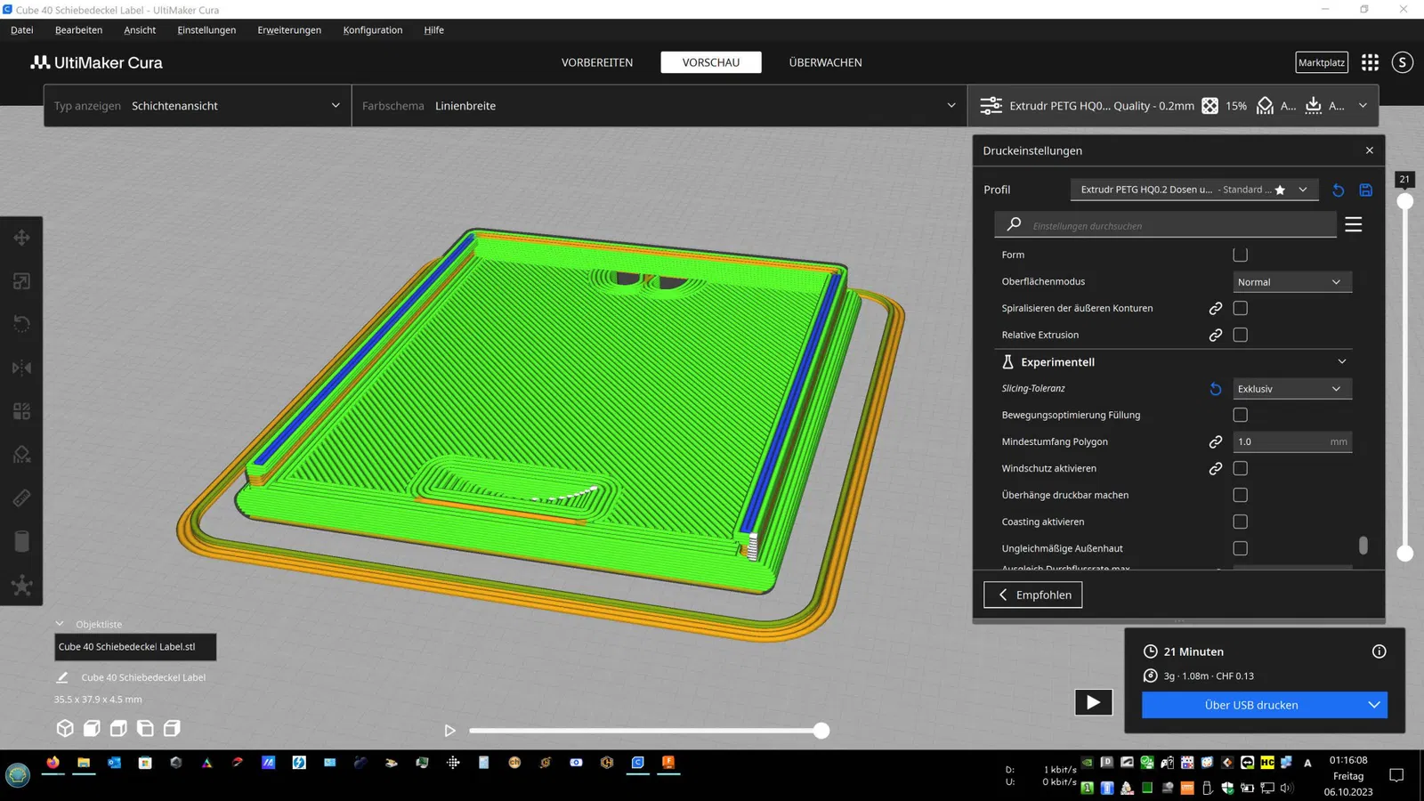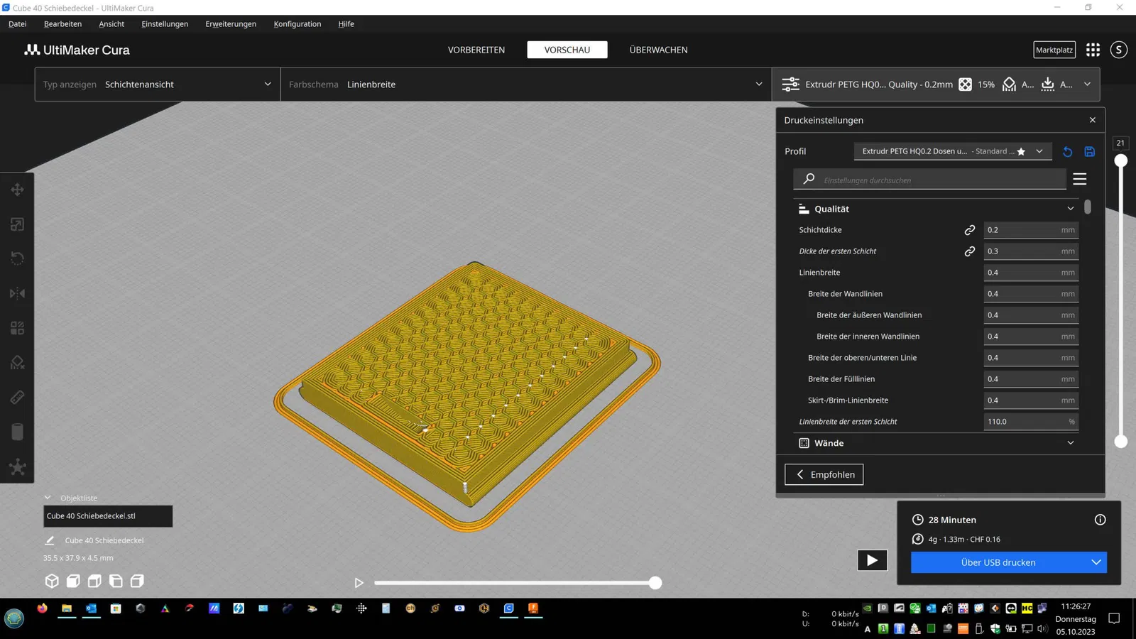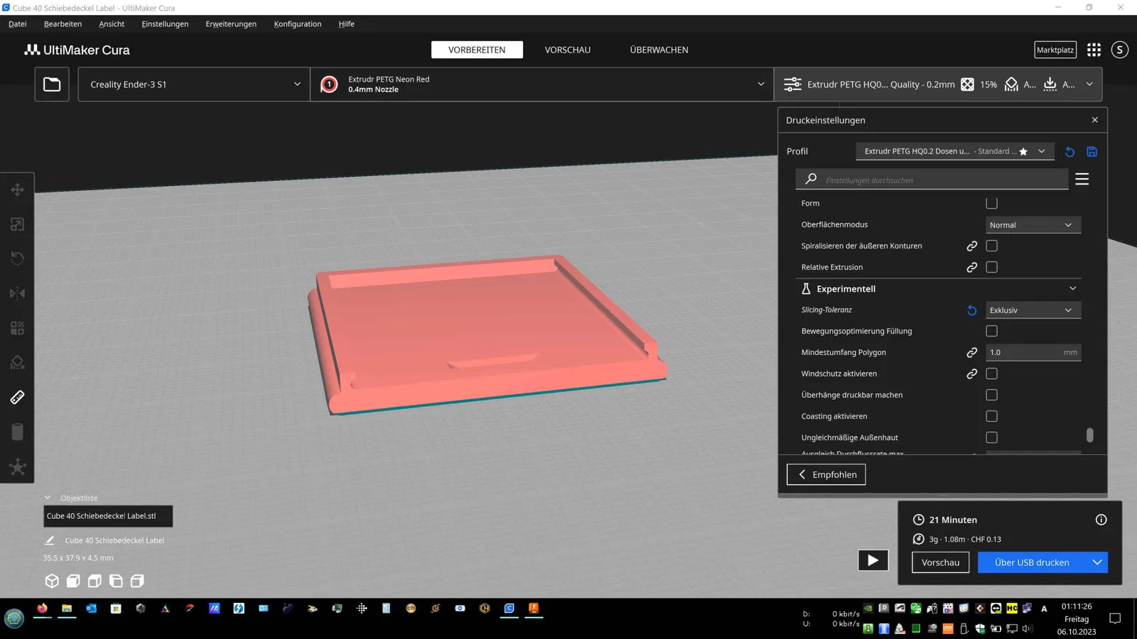 Hộp này có nắp trượt dễ dàng khớp vào khi đóng (thiết kế nội bộ) và do đó vẫn được đóng chặt. Nó cũng mở rất dễ dàng. In lý tưởng với PETG. PLA cần được thử nghiệm nếu khóa nhấp không giữ hoặc bị gãy.