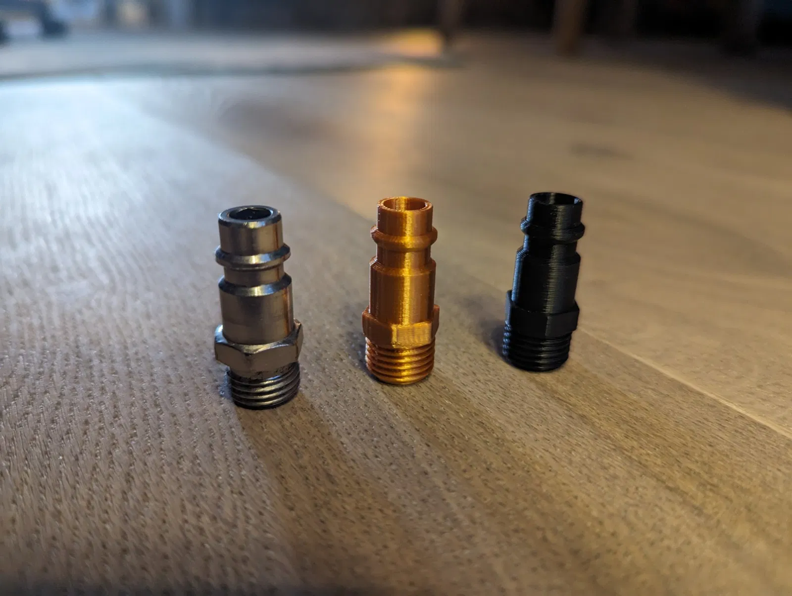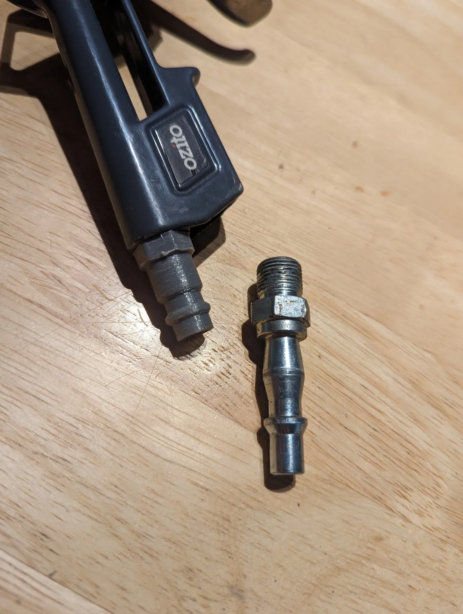 Tôi có một vài công cụ khí nén rẻ tiền từ 'Ozito' và chúng sử dụng một loại ren rất không bình thường (đối với công cụ khí nén), M12x1, cho đến nay tôi không thể tìm thấy một đầu nối XF với loại ren này - bây giờ bạn có thể in một cái. Mô hình này nên được in với ren hướng lên