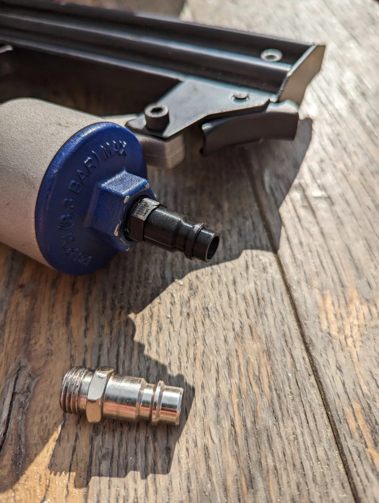 8mm ren lồi ra, tiêu chuẩn UK BSP R ¼ sẽ phù hợp với hầu hết các công cụ khí nén. Nếu có bất kỳ rò rỉ nhẹ nào, hãy sử dụng băng PTFE để tạo ra một con dấu (điều này là phổ biến với các phụ kiện kim loại)