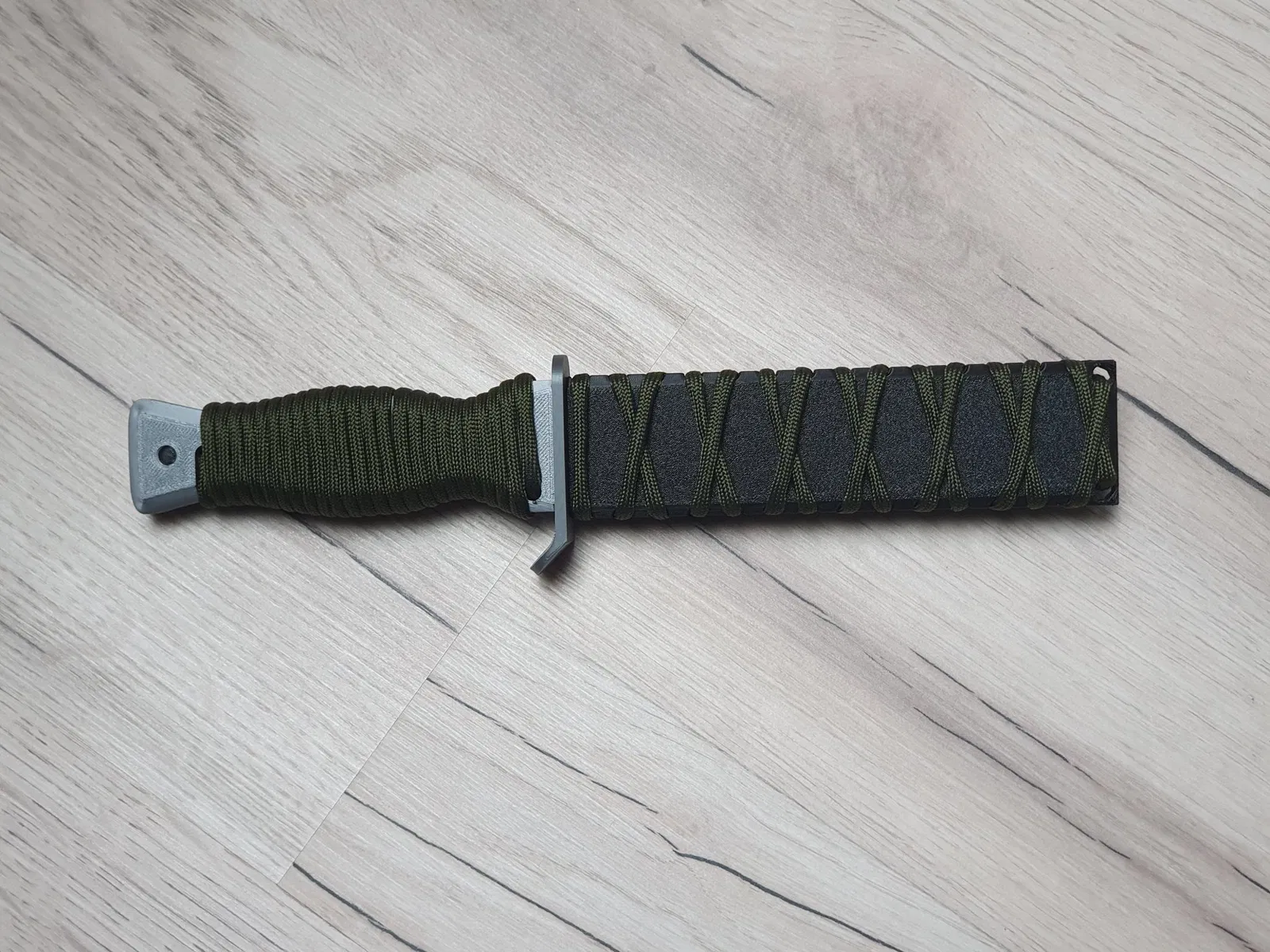 Có một phiên bản của tay cầm được thiết kế cho và không sử dụng paracord. In theo sở thích của bạn. Bao dao được thiết kế để hoạt động chỉ bằng cách sử dụng paracord để lắp ráp cả hai phần.