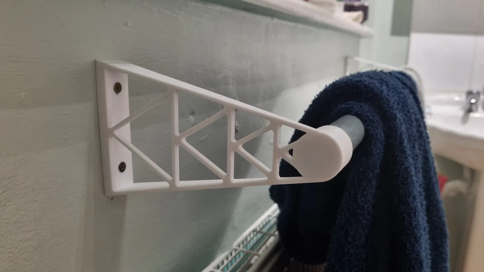 Giá đỡ khăn tắm đơn giản nhưng chắc chắn được gắn trên bộ tản nhiệt để không làm cản trở sự đối lưu.