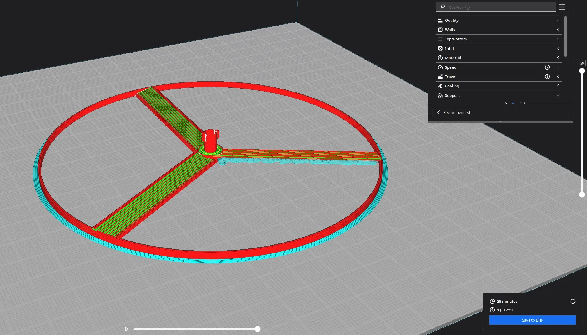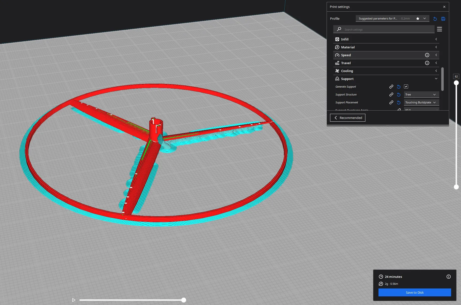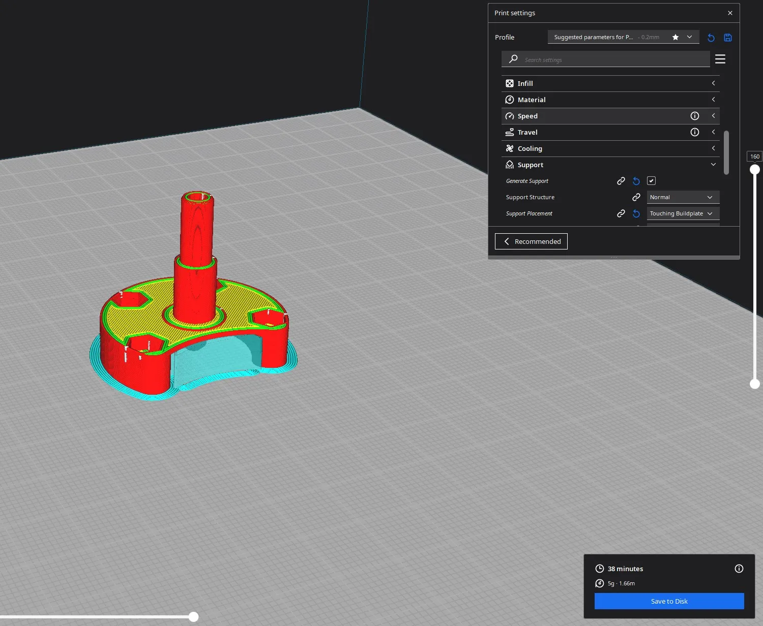 Đối với rotor, tôi đã có kết quả tốt nhất khi in với chiều cao lớp 0.1mm và hỗ trợ cây.