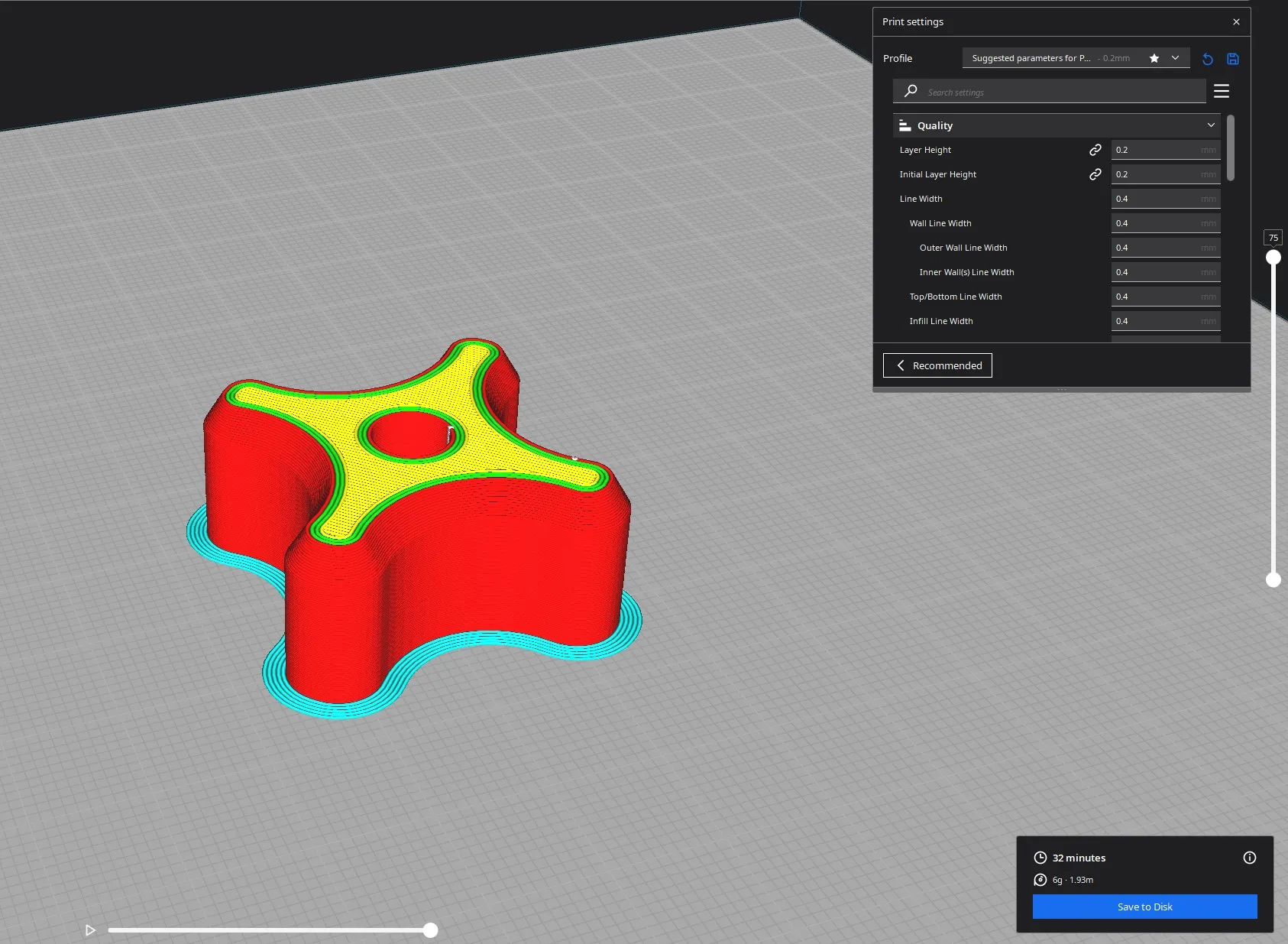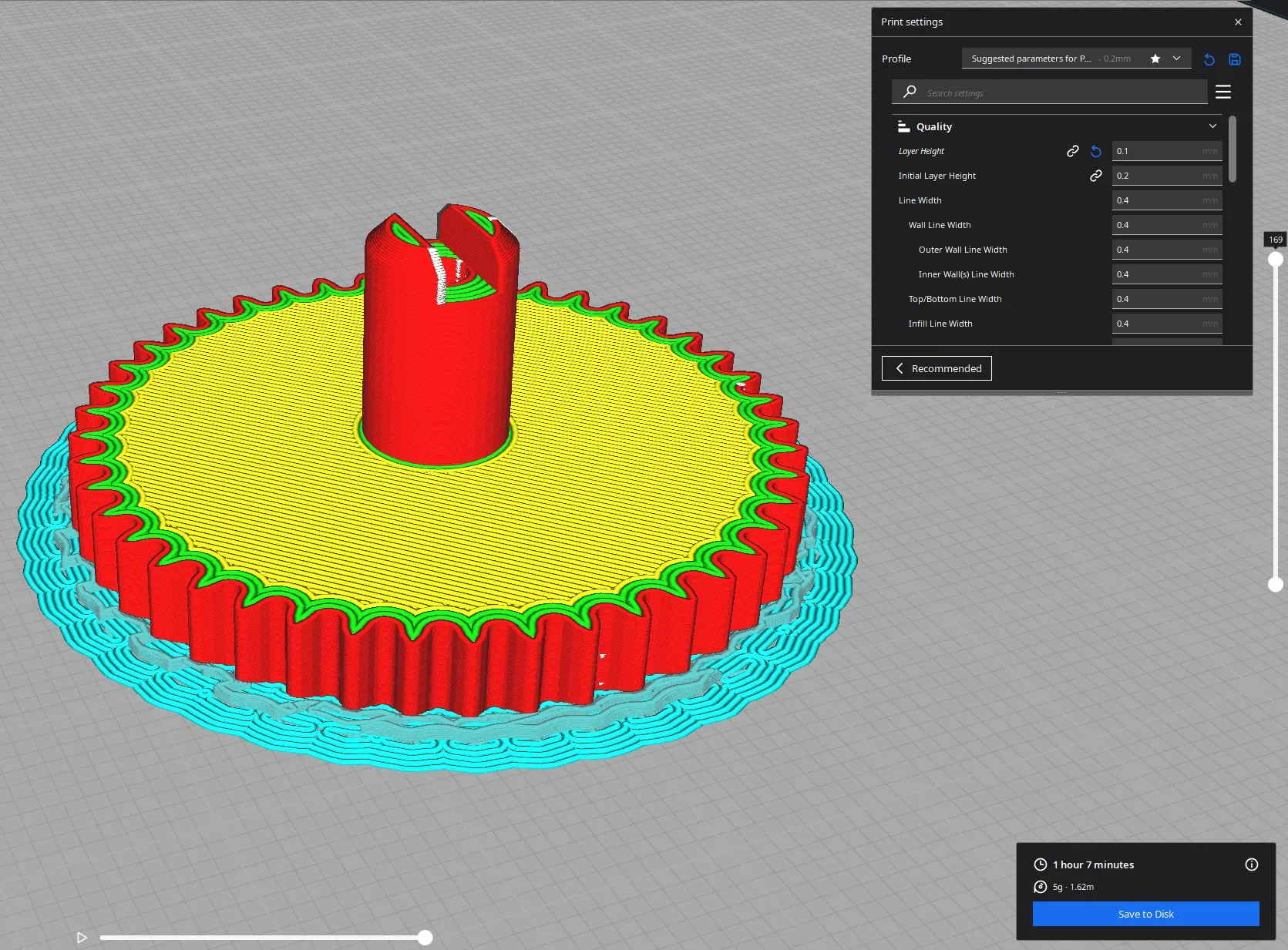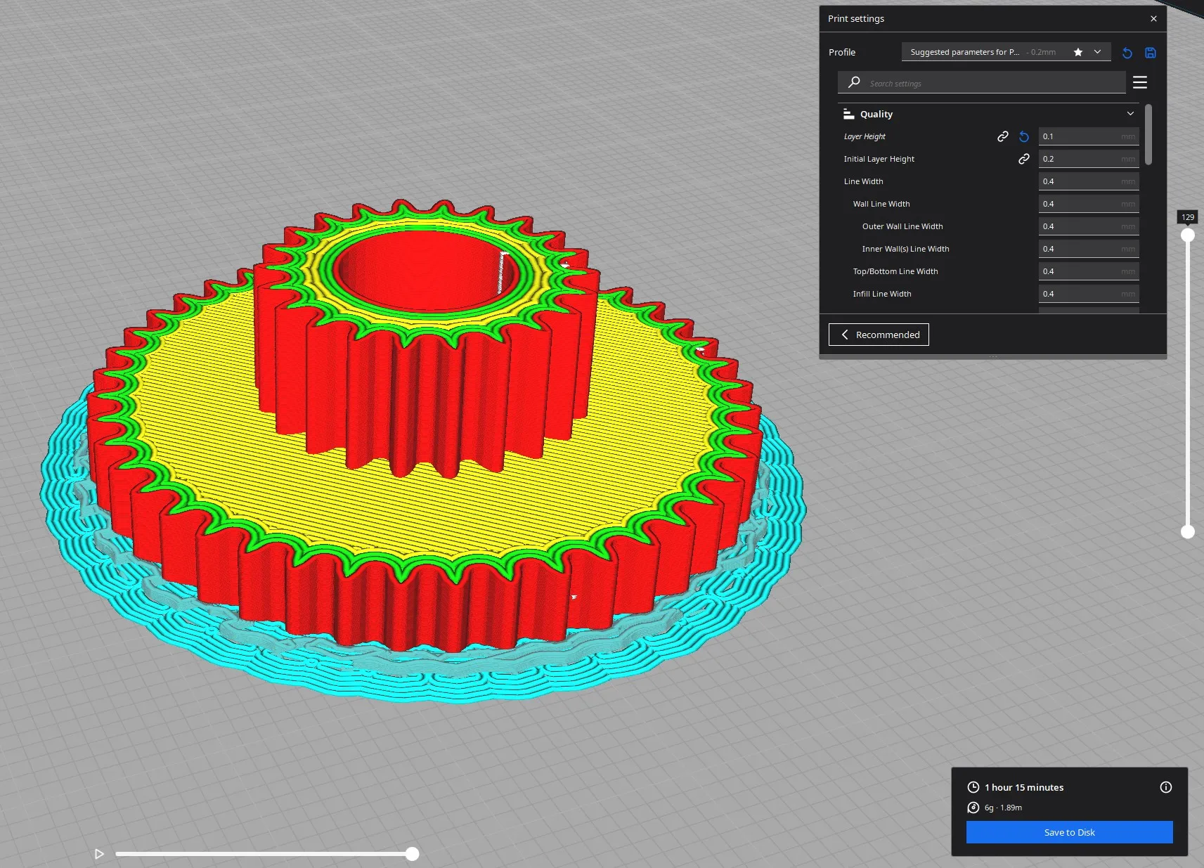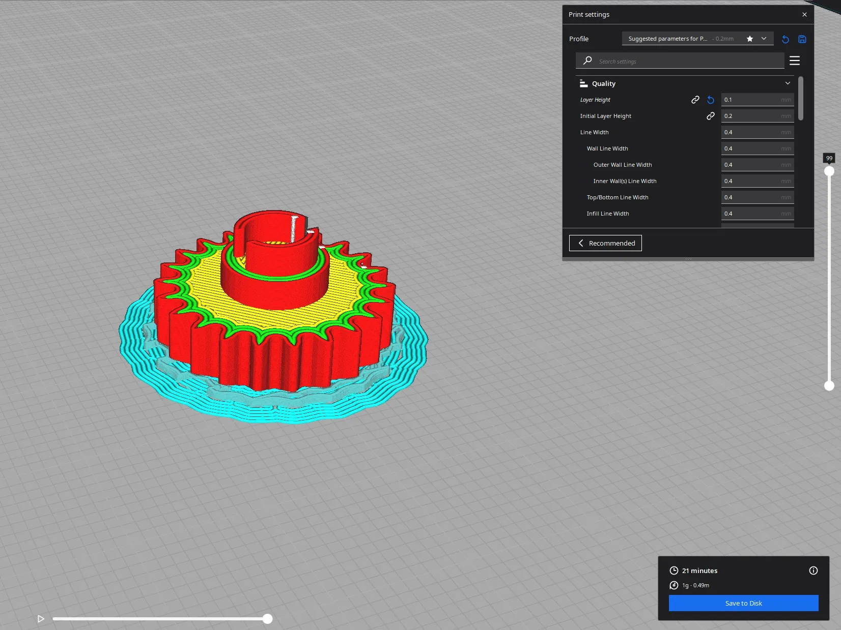 Tôi đã in tất cả các bánh răng với chiều cao lớp 0.1mm PLA 200°/60° và hỗ trợ bình thường.