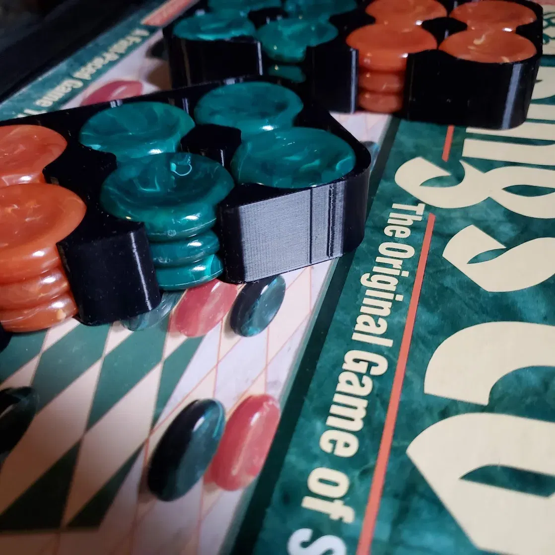 Các quân cờ này có kích thước khoảng 34.8mm x 7.8mm, và mỗi khay chứa 24 quân cờ. Tỷ lệ để phù hợp với các quân cờ khác hoặc các mảnh trò chơi tương tự.
