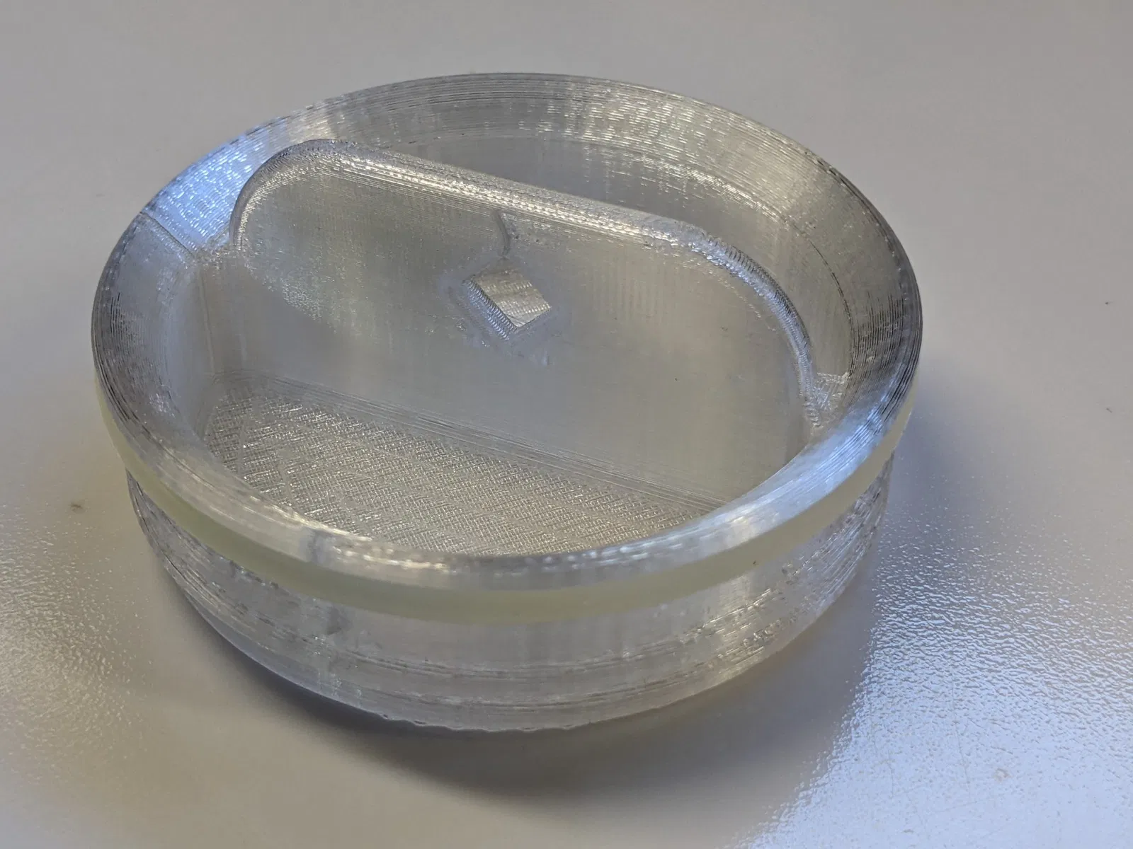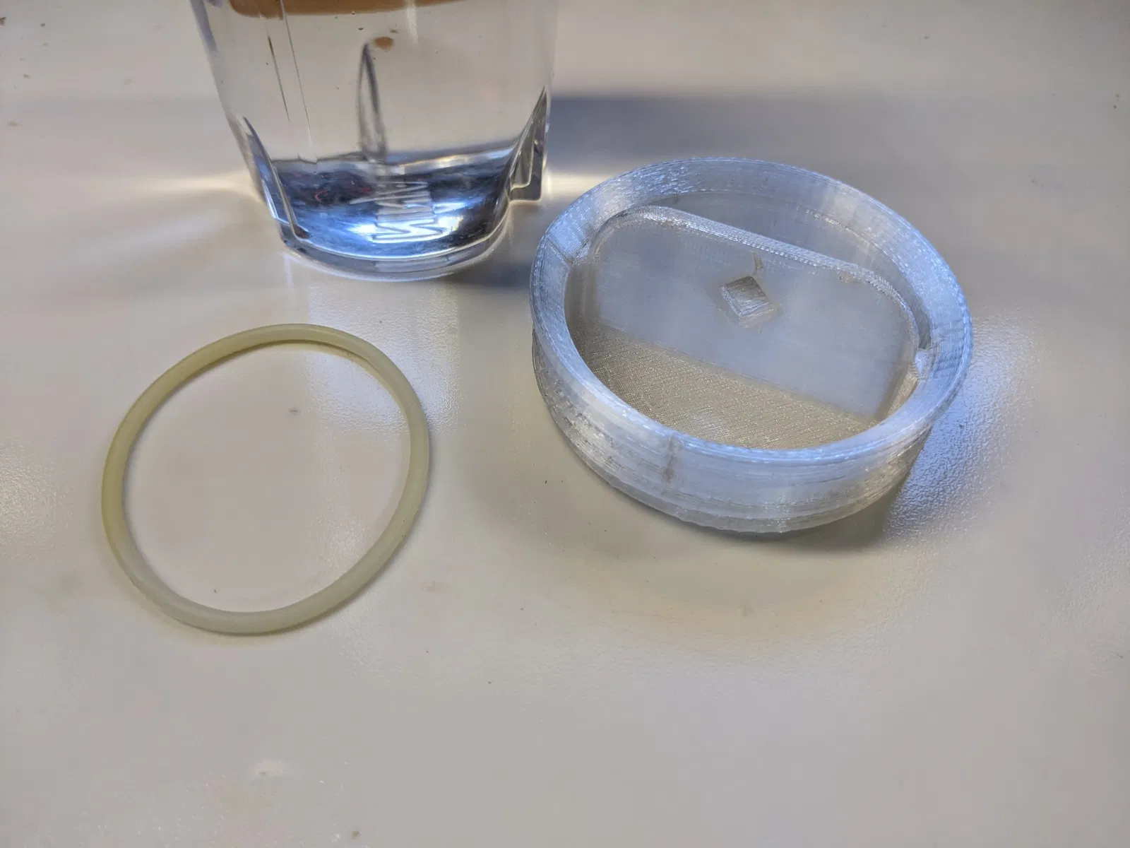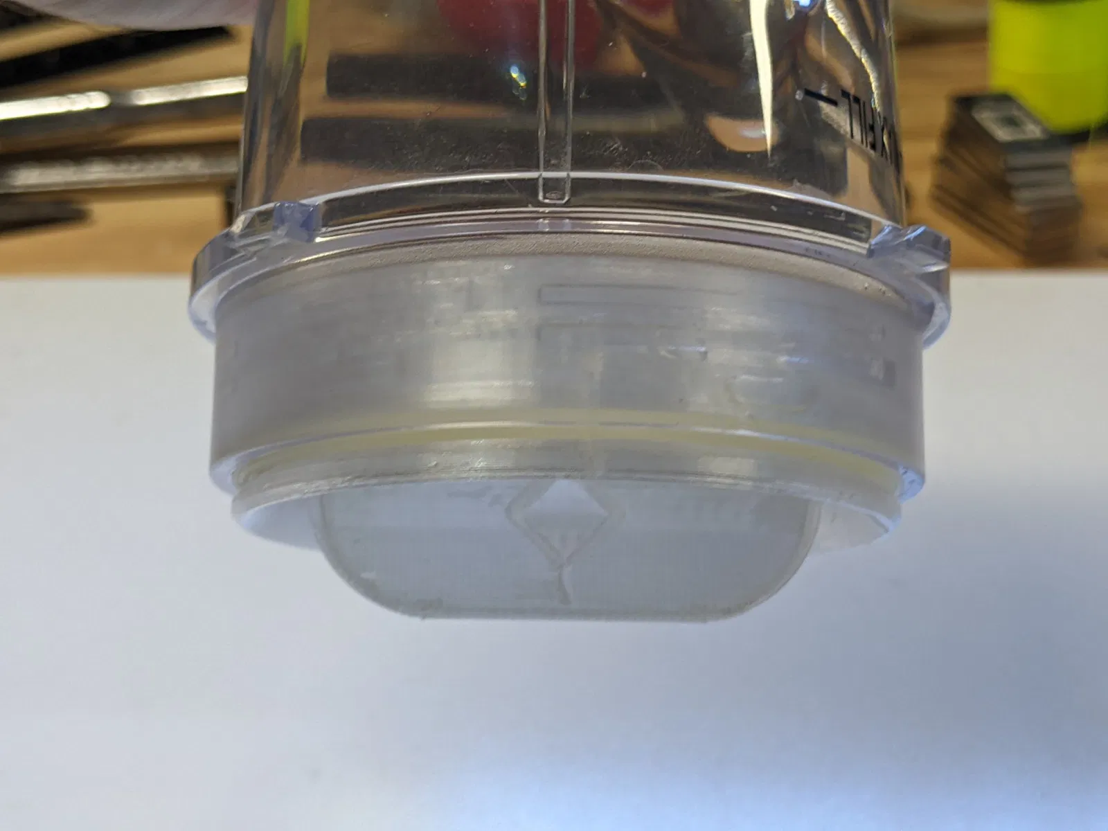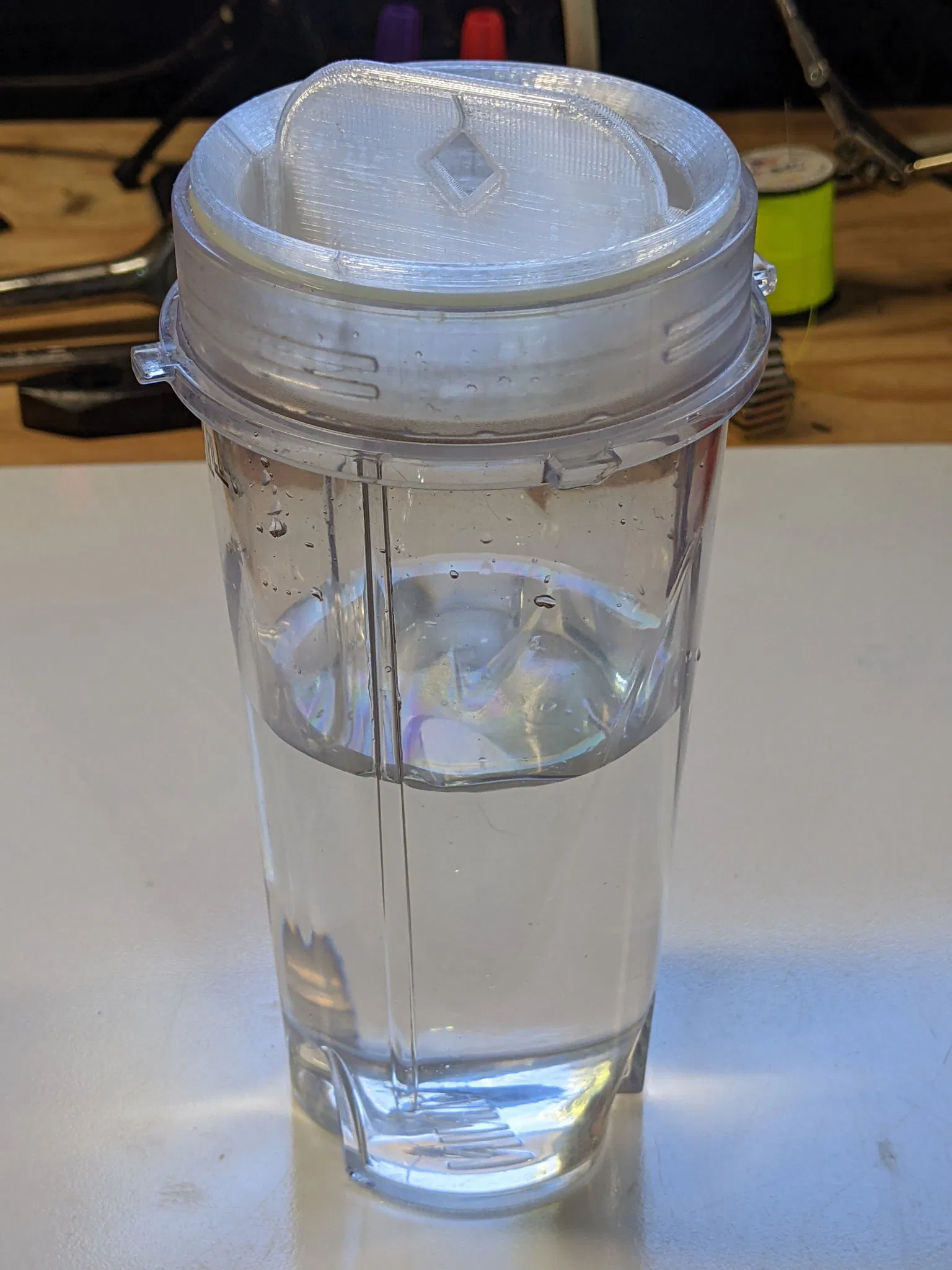 Cốc phục vụ đơn của máy xay sinh tố thương hiệu Ninja 1000 watt chuyên nghiệp thường có một mô-đun máy xay đóng kín ở phía trên. Điều này không phù hợp với lối sống di động của tôi, vì vậy tôi đã thiết kế nắp thay thế này không có lưỡi dao gắn kèm.