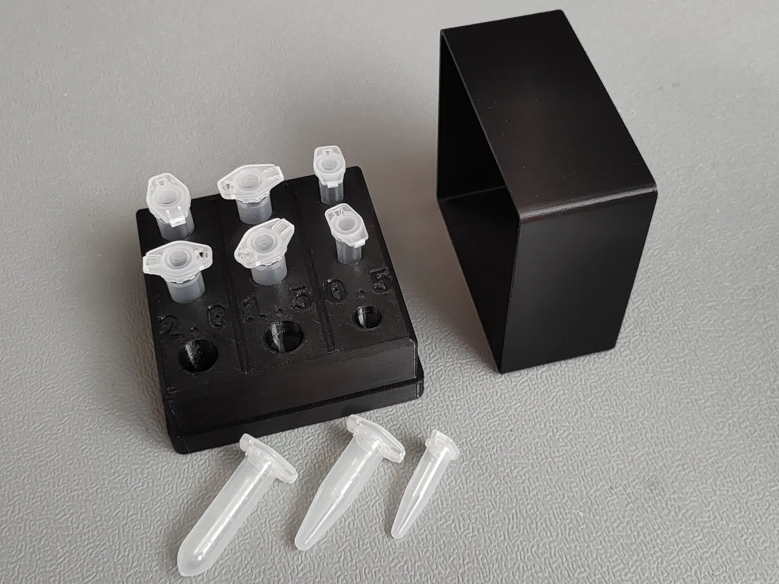 Một bộ chứa Eppendorf đơn giản và/hoặc tấm chắn ánh sáng có nắp, phù hợp với 3 ống 0.5/1.5/2.0ml.