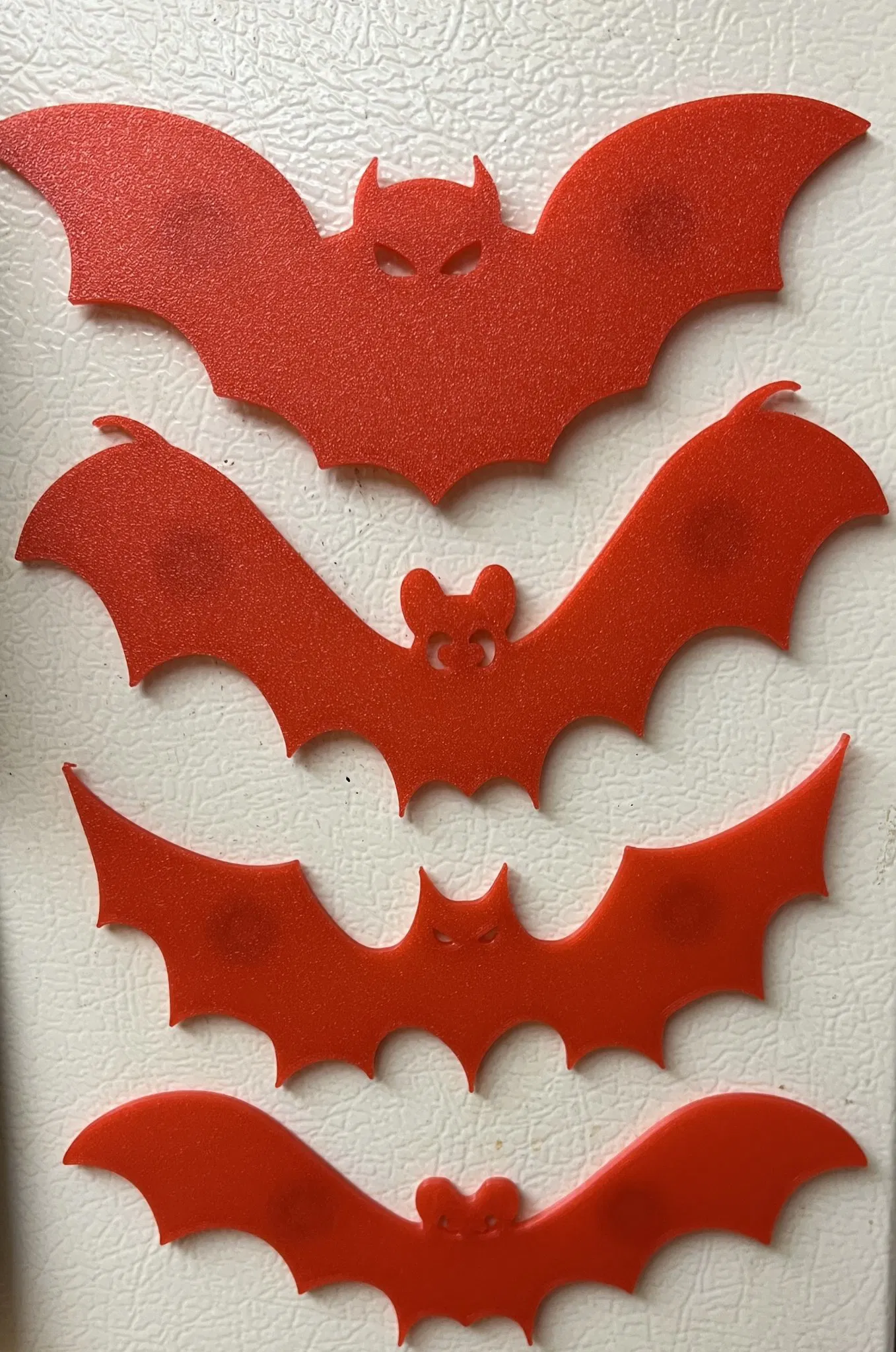 Bốn nam châm tủ lạnh hình dơi theo chủ đề Halloween. Sử dụng hai nam châm có đường kính 6mm x độ dày 3mm. Trong trường hợp của tôi, tôi đã lấy nam châm từ Amazon.