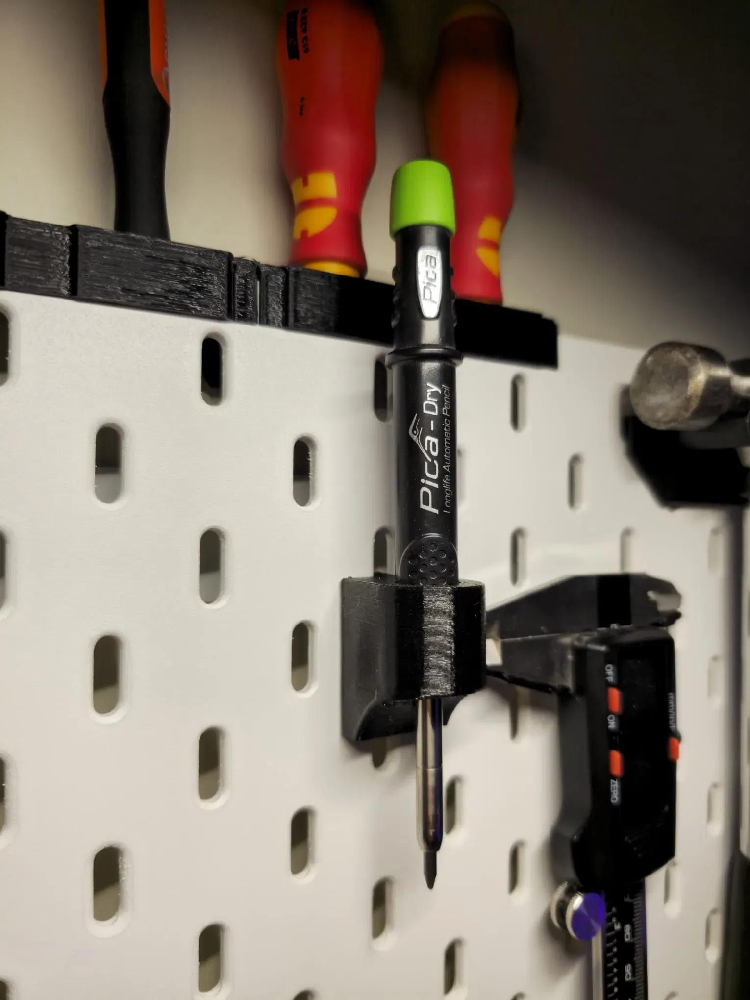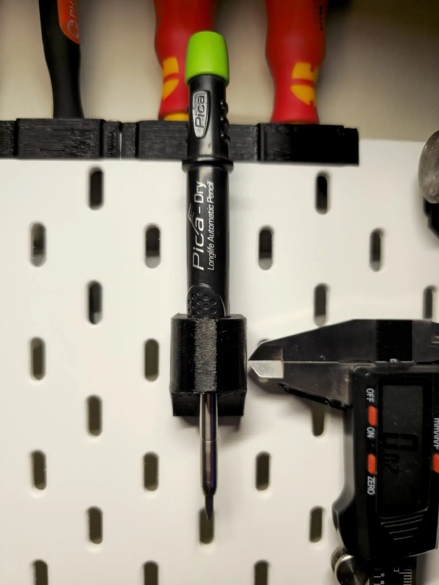 Một người giữ bút chì khô cho hệ thống IKEA Skadis nổi tiếng. Nó sử dụng cùng giá treo như các mô hình khác của tôi.