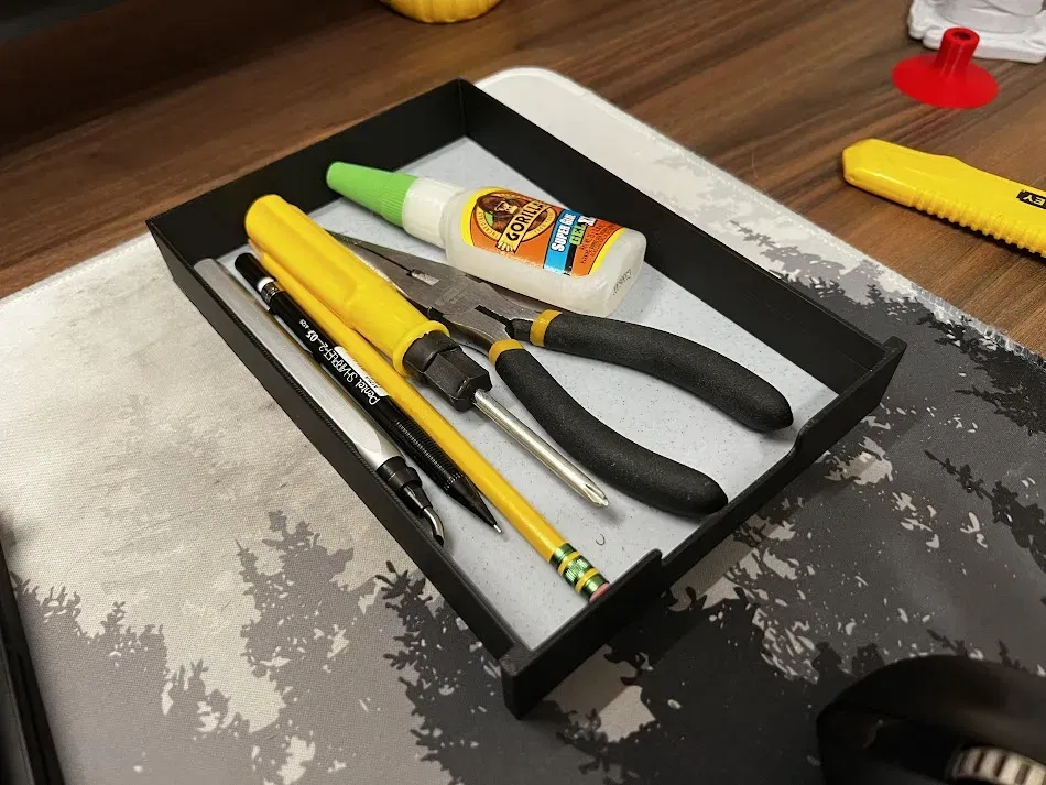 Điều này có thể được in như một khay độc lập cho dưới chân đế màn hình. Nó cũng có thể được sử dụng với các giá đỡ có trong mô hình gốc.
