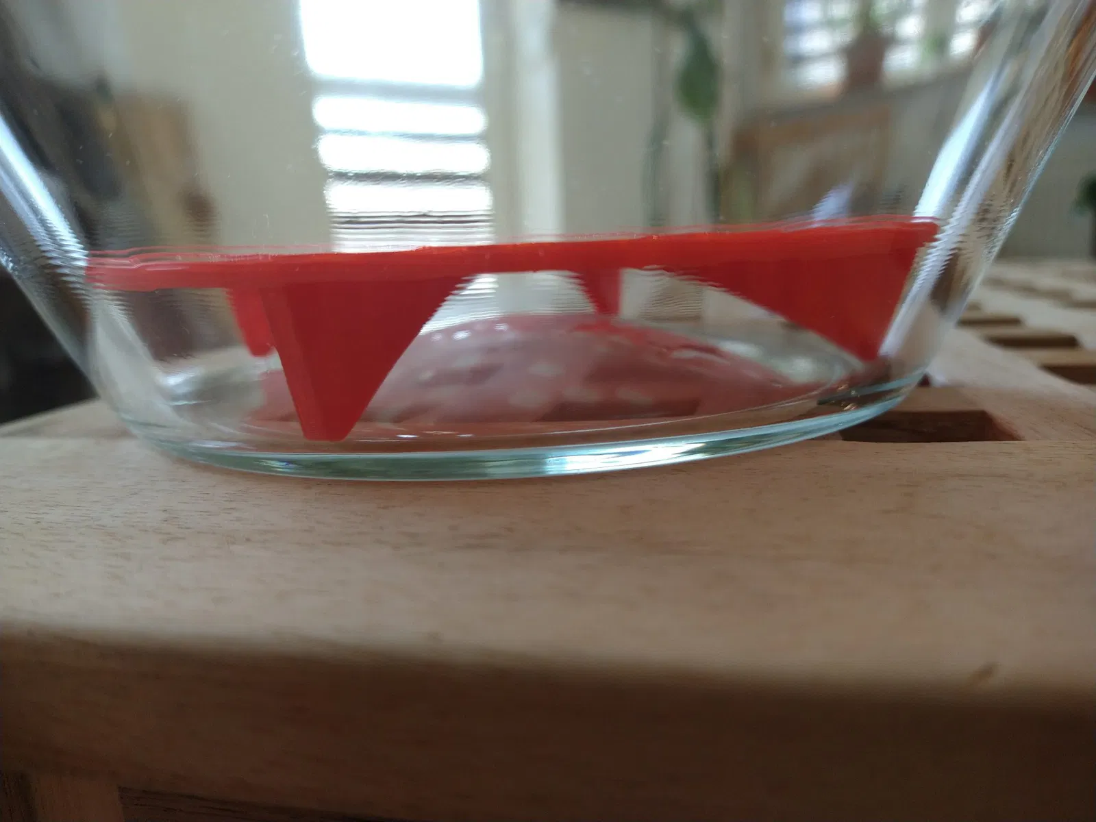 Thiết kế được tham số hóa (để sử dụng với Fusion 360). Tệp đã tải lên phù hợp với các bát thủy tinh Ikea có đường kính đáy 120mm và đường kính trên 140mm.