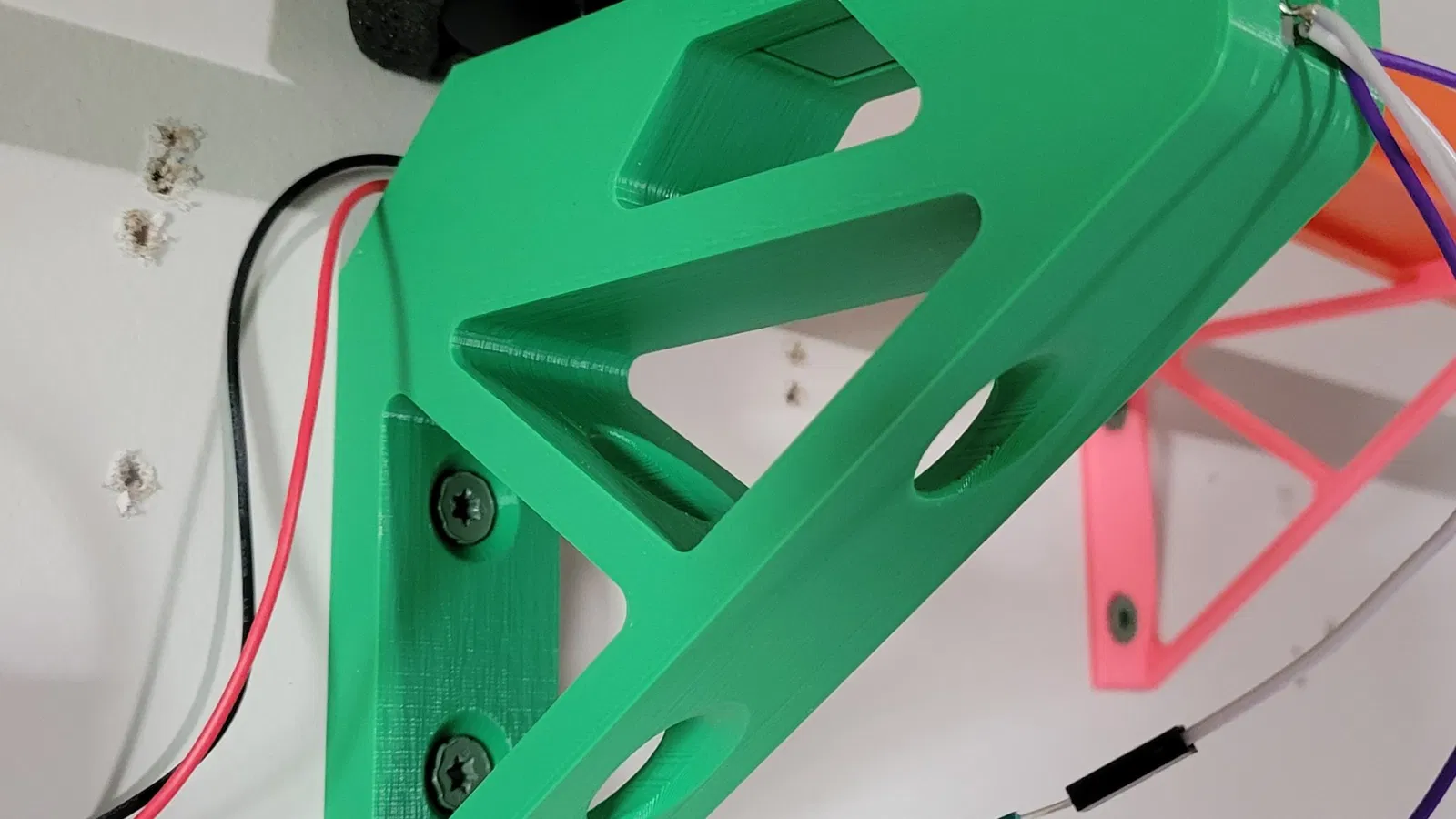 Khoảng cách từ trung tâm đường đua đến tường là 73mm. Tôi đã bao gồm một giá đỡ đường đua riêng biệt để căn chỉnh với khoảng cách này (màu hồng trong ảnh).
