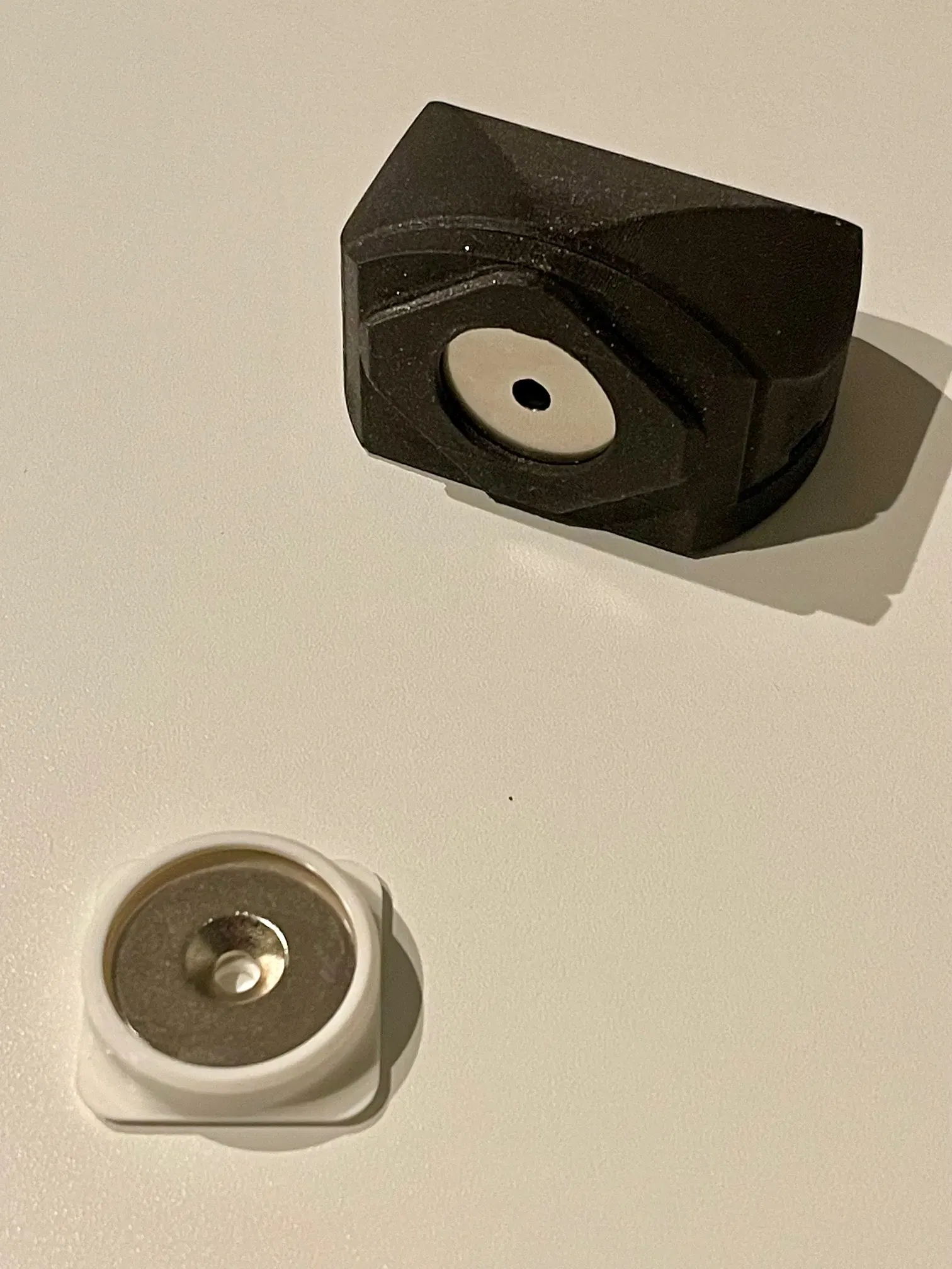 • Tất cả các thông số in ấn đều dựa trên việc sử dụng đầu phun 0.4 mm và chiều cao lớp 0.1 mm. Thiết kế được tối ưu hóa cho các cài đặt này. ### Hướng dẫn lắp ráp 1. Gắn giá đỡ nam châm tại vị trí mong muốn trên cửa. Bạn có thể sử dụng băng dính hai mặt chắc chắn cho việc này. Đầu tiên, hãy làm sạch khu vực để đạt được độ bám dính tối đa.