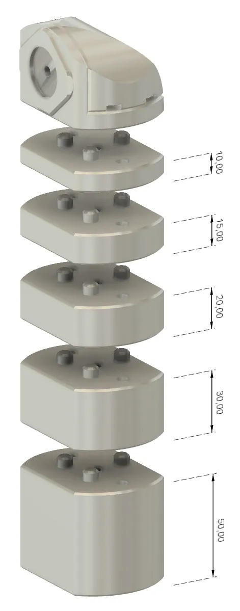 Thiết kế này vừa là một cái chặn cửa vừa là một cái giữ cửa. Hai nam châm giữ cửa một cách chắc chắn. Trung tâm của nam châm trong cái chặn cửa nằm cách sàn 21.5mm. Nếu bạn sử dụng băng dính hai mặt để gắn, hãy thêm độ dày của nó. Với sự trợ giúp của các phần mở rộng khác nhau (10, 15, 20, 30, 50 mm), có thể kết hợp theo ý muốn, chiều cao của cái chặn cửa có thể dễ dàng và linh hoạt điều chỉnh. ##### Vật liệu cần thiết - Hai nam châm neodymium tròn. Đường kính 30 mm, độ sâu 5 mm. Nam châm với kích thước này thường được tìm thấy trên mạng. Tôi đã nhận thấy rằng chúng thường nhỏ hơn một chút so với đã nêu, đo 29/4.5 mm thay vì 30/5 mm. Điều đó là chấp nhận được; chúng chỉ không nên lớn hơn.